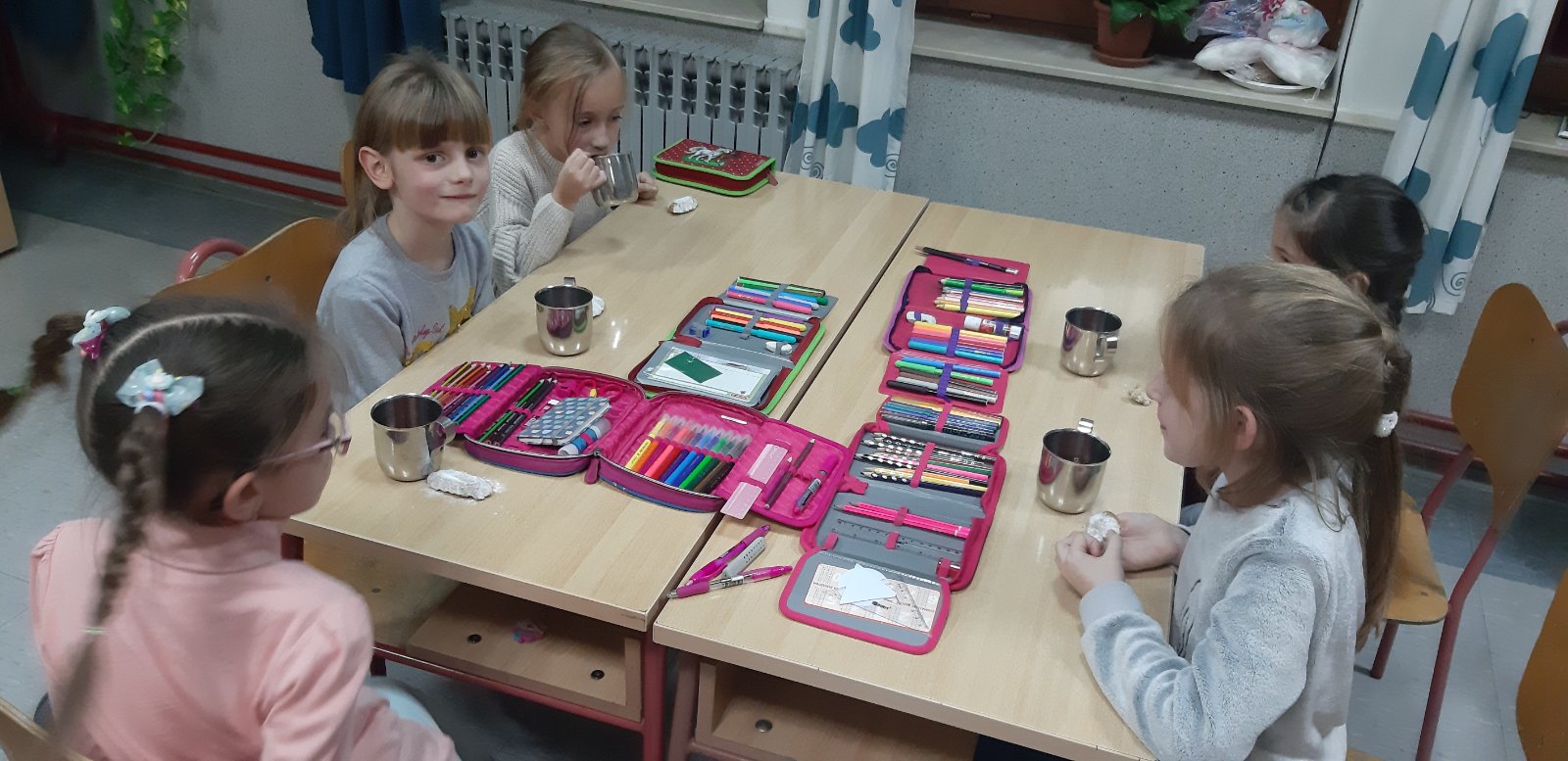Ove godine naša škola sudjeluje u provedbi programa Školski medni dan, projekta kojeg provode Ministarstvo poljoprivrede, Hrvatska poljoprivredna agencija i Agencija za plaćanja u poljoprivredi, ribarstvu i ruralnom razvoju. Jučer su našim prvašićima u obje škole podijeljeni poklon paketi u kojima su staklenke meda slavonskih proizvođača, slikovnica o pčelarstvu te promotivni materijal Med hrvatskih pašnjaka. Svrha provođenja ovog programa prvenstveno je oblikovati prehrambene navike djece s ciljem trajnog povećanja unosa meda u prehranu, kao i promocija lokalnih proizvođača meda, čime se nastoji utjecati na svijest javnosti o važnosti pravilne prehrane, osobito kod djece, ali i dati podršku razvoju malog poduzetništva. Učiteljice su ovaj projekt iskoristile tako da su osmislile integrirani Medni dan. U posjet su nam došli roditelji naše učenice Tene Cvitković, koji su učenike upoznali s procesom dobivanja meda i priborom koji se koristi u pčelarstvu. Ovim putem im zahvaljujemo na trudu i volji da naše prvašiće nešto više nauče o pčelama i načinu na koji nastaje med. U sklopu integriranog dana prvašići su čitali i rješavali interaktivnu slikovnicu Ljudevita Bauera: Tri medvjeda i gitara, prebrojavali pčelice i medvjede, bojali i ponavljali sadržaje iz matematike. Na kraju su se okrijepili medenjacima i čajom s medom koje su pripremile učiteljice Marija Jakab i Natalija Bošnjaković. Slike tijeka programa, nalaze se u prilogu! :)