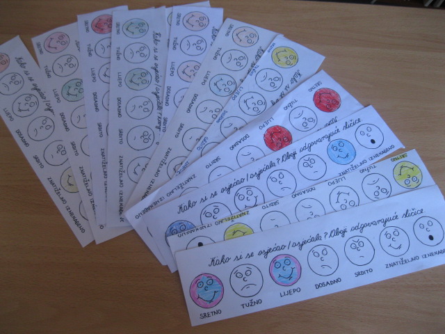 Učenici su ispunili evaluacijske listiće sa sretnim, znatiželjnim i veselim smajlićima.