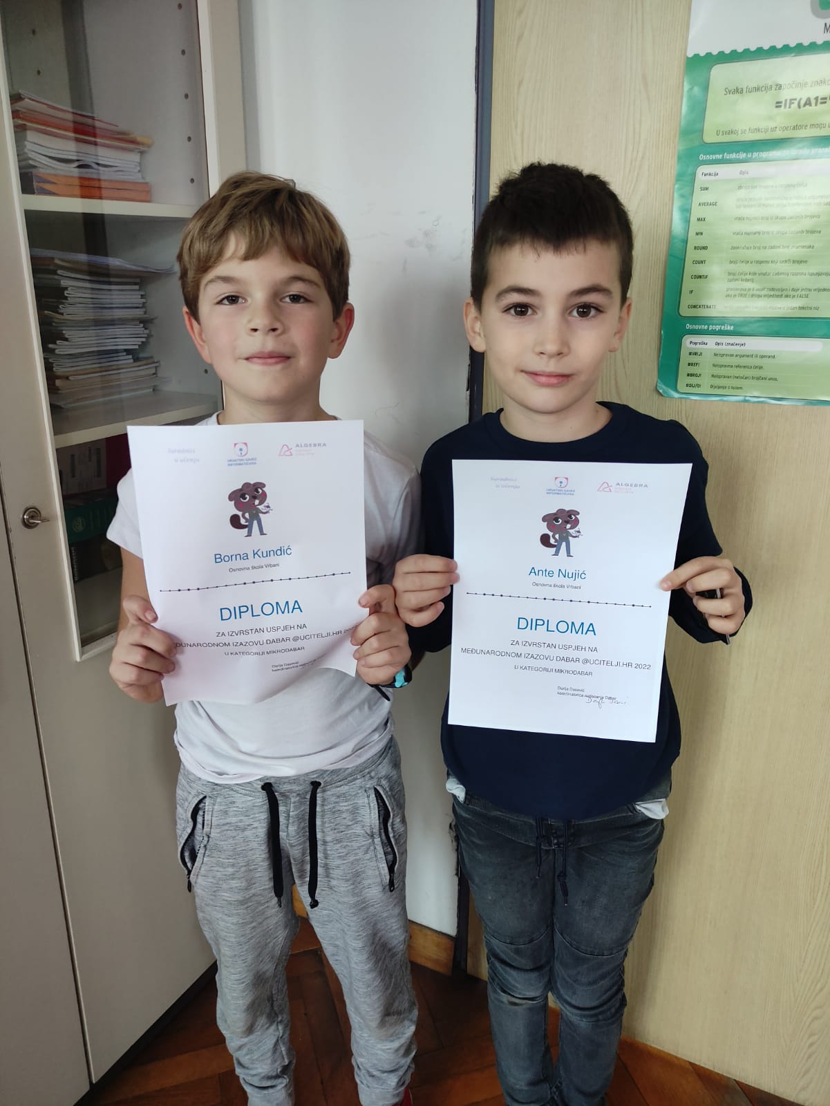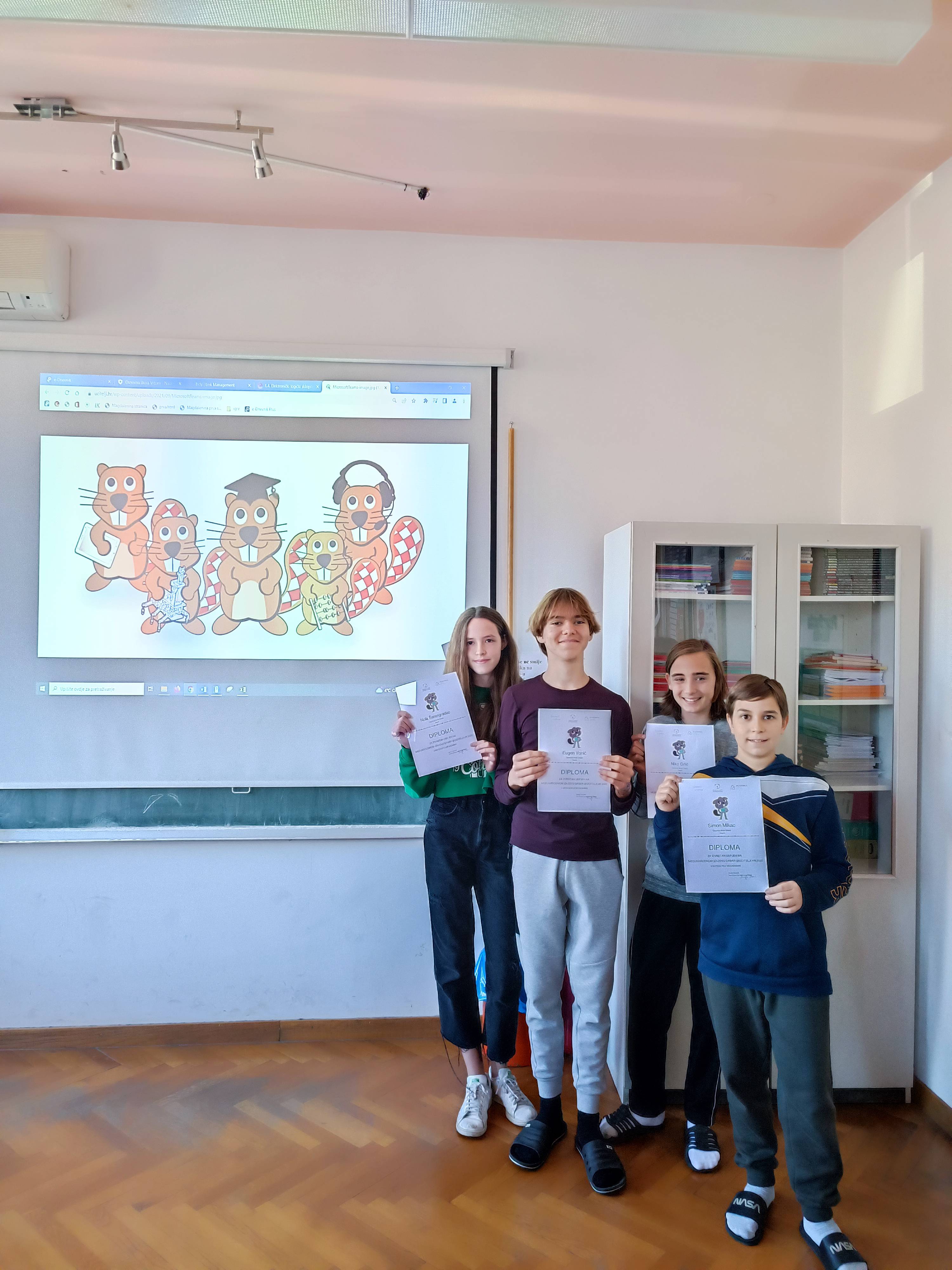 Pohvaljujemo sve učenike koji su se prijavili na natjecanje i pokazali motivaciju i interes za područje informatike, a posebno čestitamo učenicima koji se postigli izniman uspjeh i plasirali se u 10% najboljih u Hrvatskoj: Nika Babić, Ante Nujić (2.a), Borna Kundić, Karla Svat (2.b), Mirna Ogrin (6.b), Karla Lacković (6.d), Simon Mikac, Filip Špoljar (7.a), Niko Grlić (7.b), Josip Čirjak, Nola Šarengradac, Eugen Vonić (8.a).