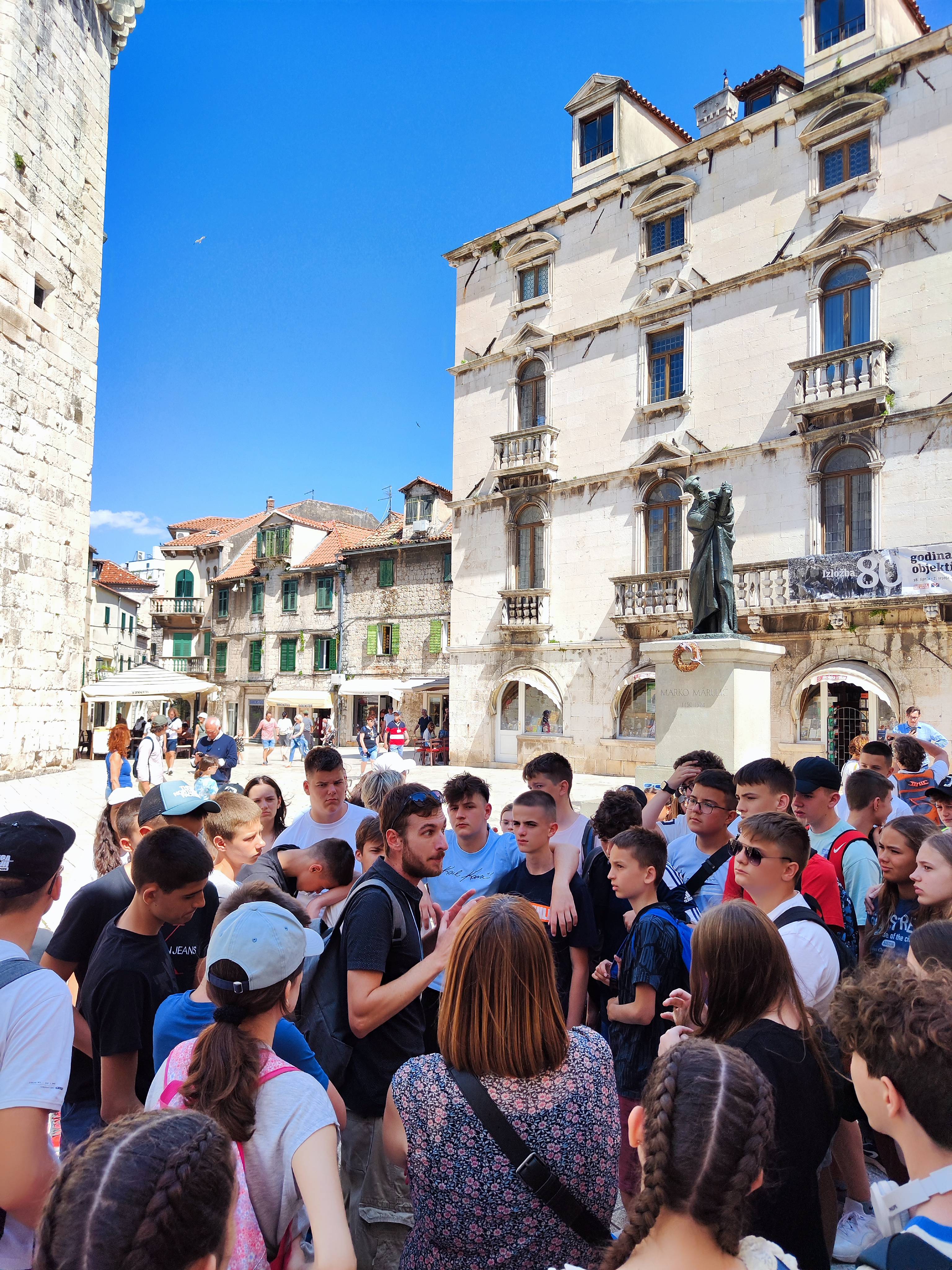 Trećega dana posjetili su Split u pratnji stručnog vodiča i prošetali središtem grada te povijesnom jezgrom gdje su vidjeli brojne znamenitosti: Dioklecijanove podrume, crkvu svetog Duje, Peristil, kip Grgura Ninskog i rodnu kuću oca hrvatske književnosti, Marka Marulića…