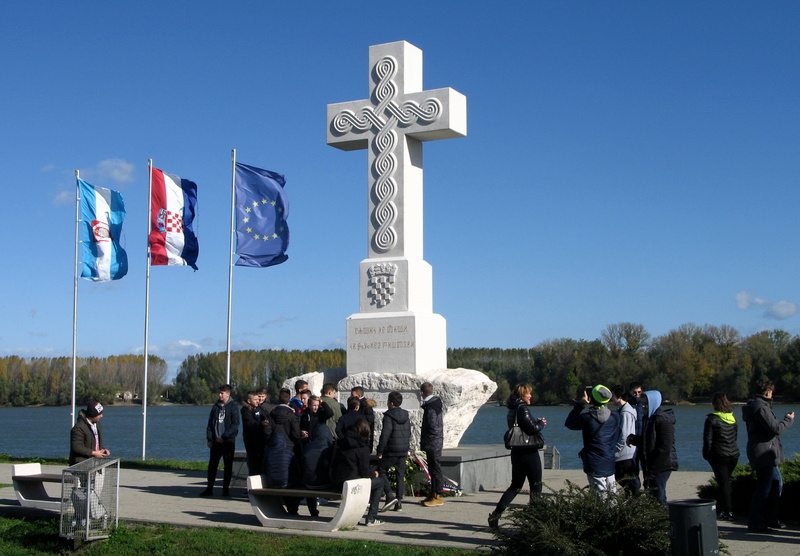 Potom smo se prošetali uz vjetrovitu obalu Dunava do utoka rijeke Vuke u Dunav i spomenika Vukovarskim braniteljima s natpisom „Navik on živi k izgine pošteno.“