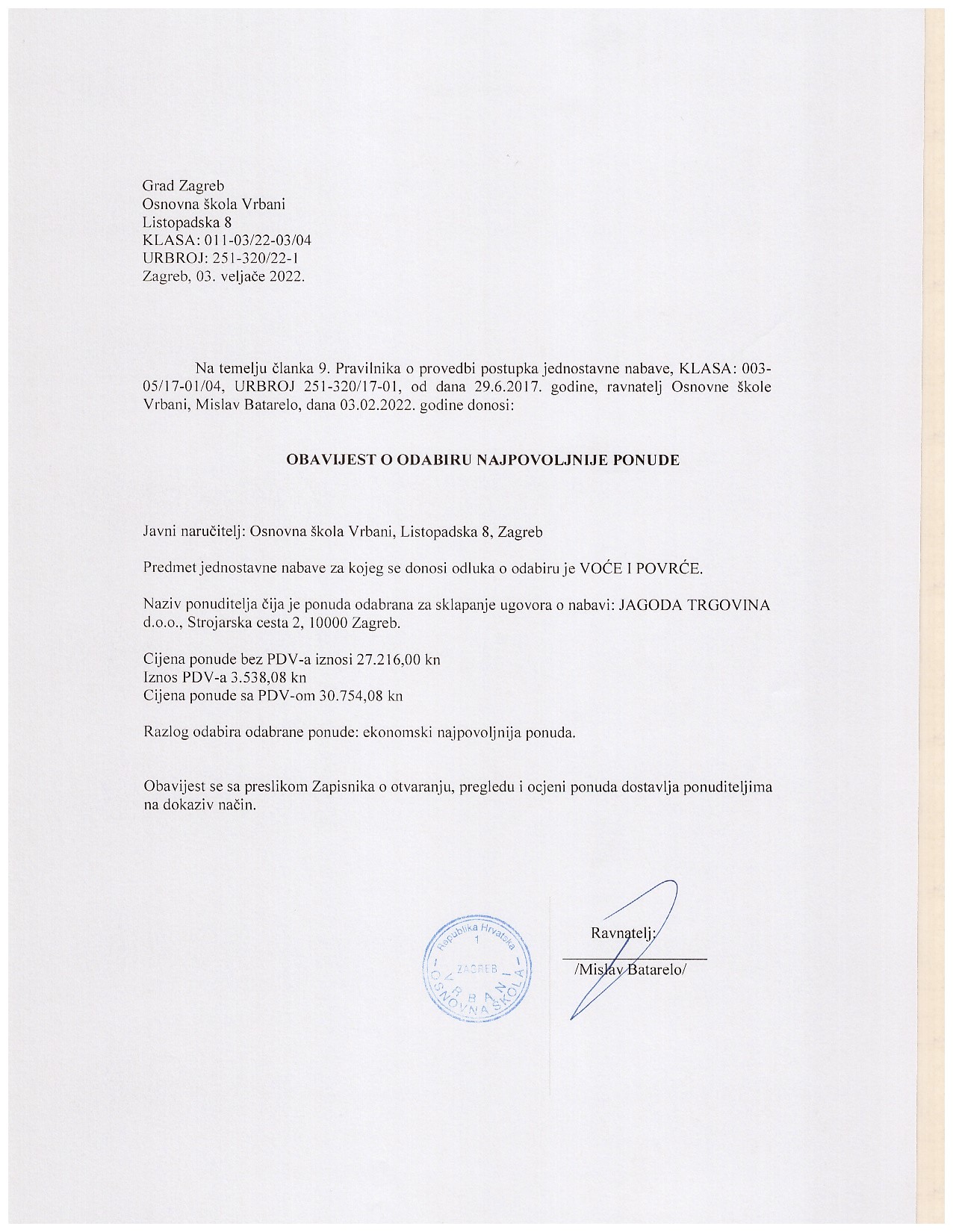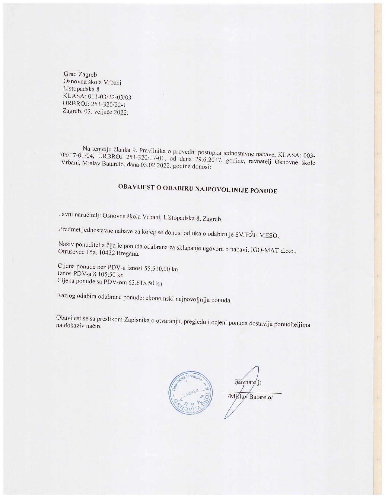 3. Obavijest o odabiru najpovoljnije ponude (2022.)