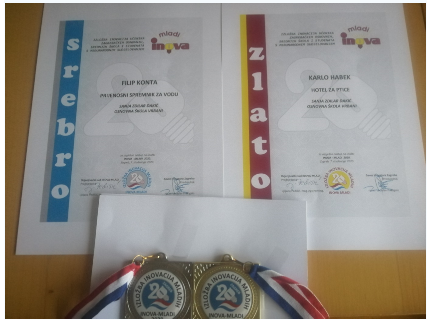 Učenici Karlo Habek 7b i Filip Konta 7b, sudjelovali su na natjecanju Inova – mladi 2020. i u kategoriji osnovnih škola iz Hrvatske i regije osvojili su zlatnu i srebrnu medalju.
