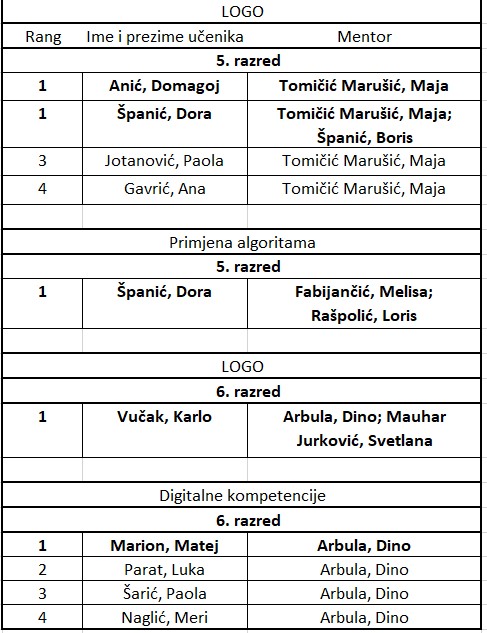 Rezultati školskog natjecanja iz informatike