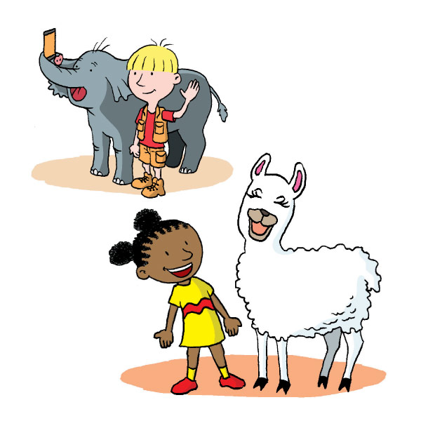 Sad pročitajte tekstove u 2. zadatku iz udžbenika. To su razglednice koje Elliot i April, Greg i Kim pišu ujaku Philu s godišnjeg odmora. Uzmite različite bojice i u tekstovima potcrtajte sve životinje. Ukupno ih je deset.Sad riješite 3. zadatak iz udžbenika u kojemu trebate povezati lijeve dijelove rečenica s desnima.
