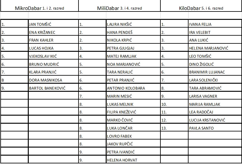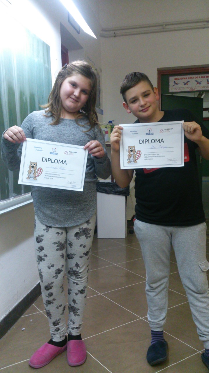Naši učenici Jan Tomšić 2.a, Laura Nikšić 4.a, Hana Pendeš 4.b, Nikola Krpić, 4.b i Ivana Felja 6.b ušli su među 10% najboljih. Bravo!