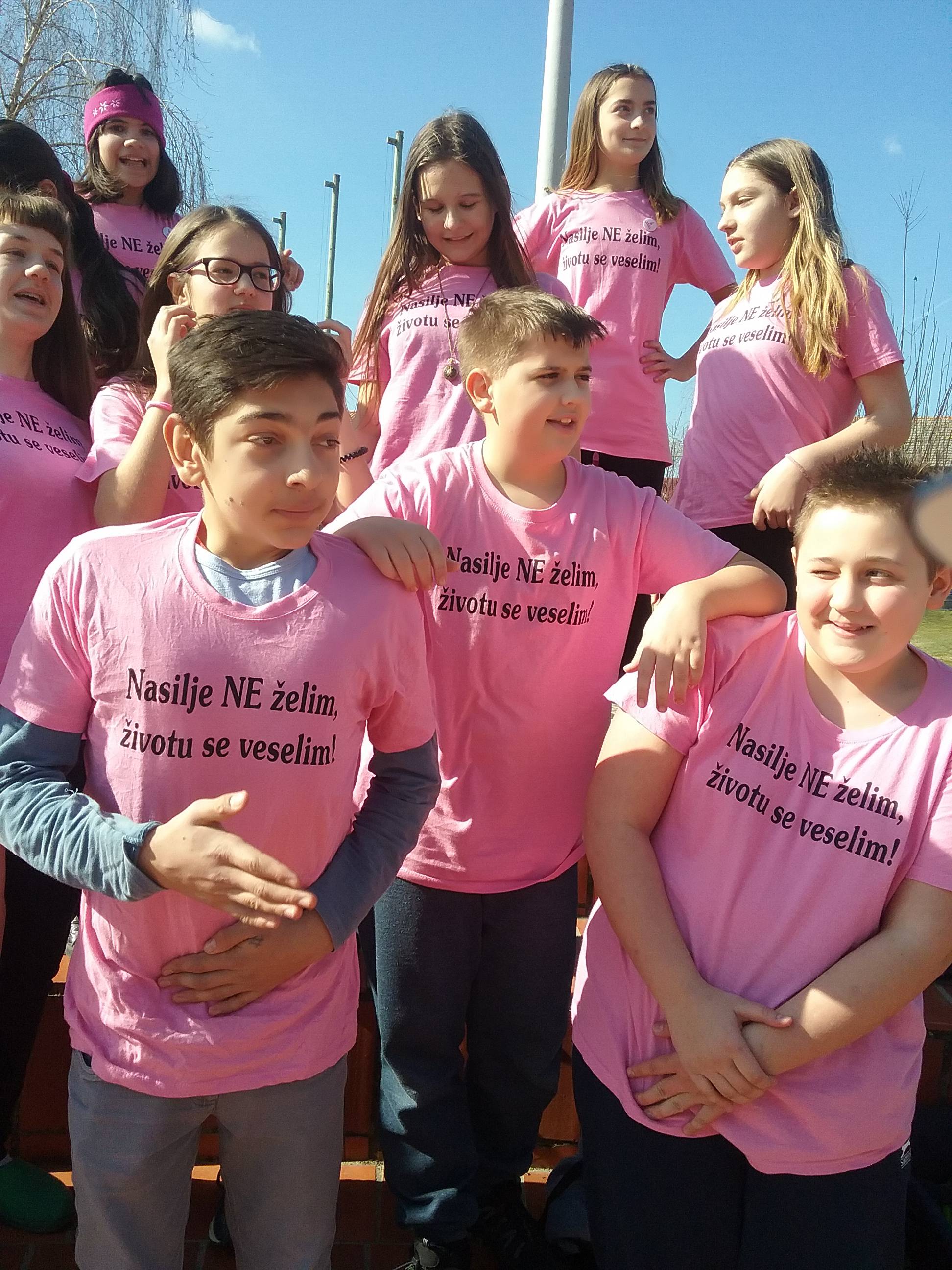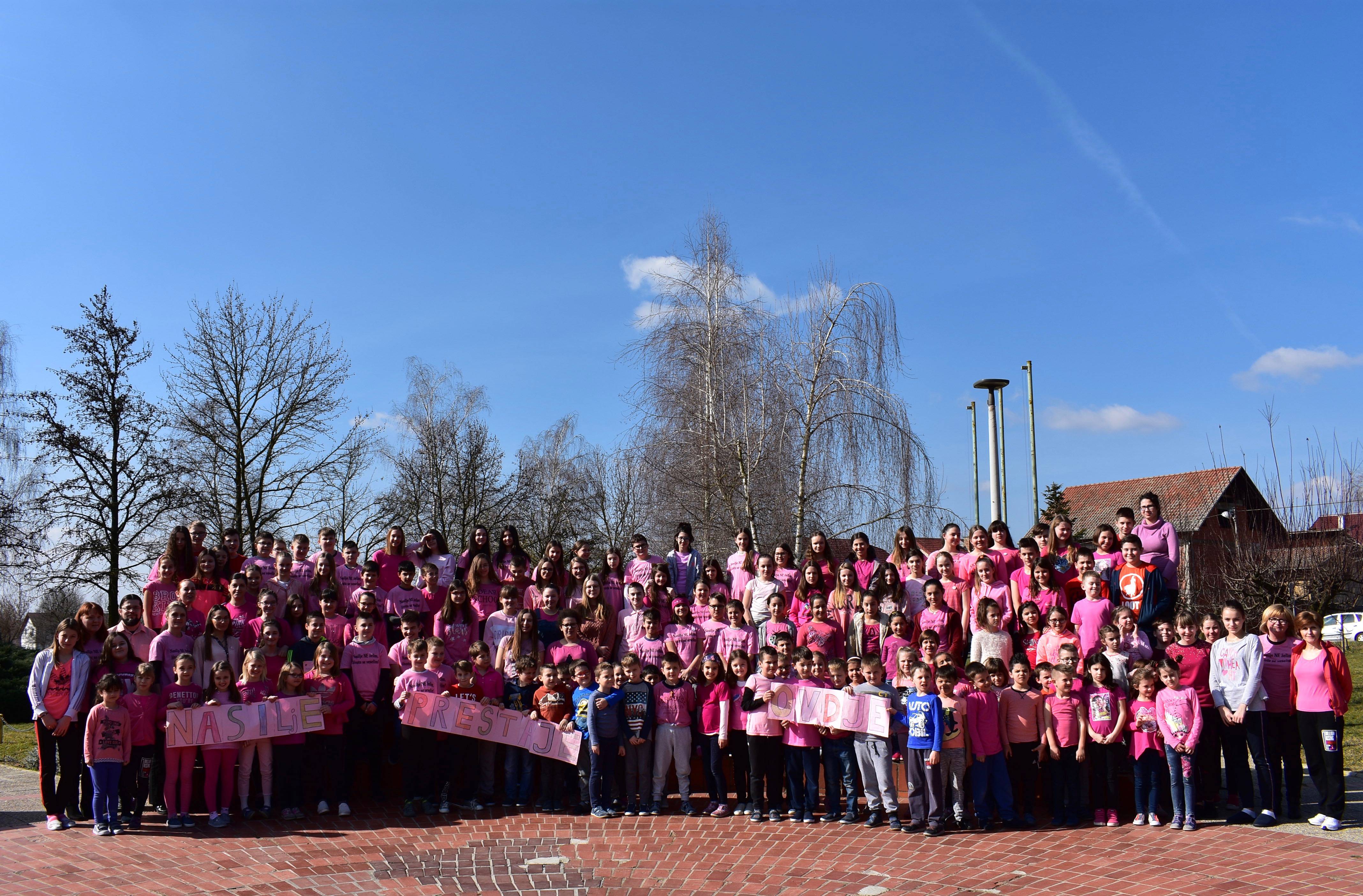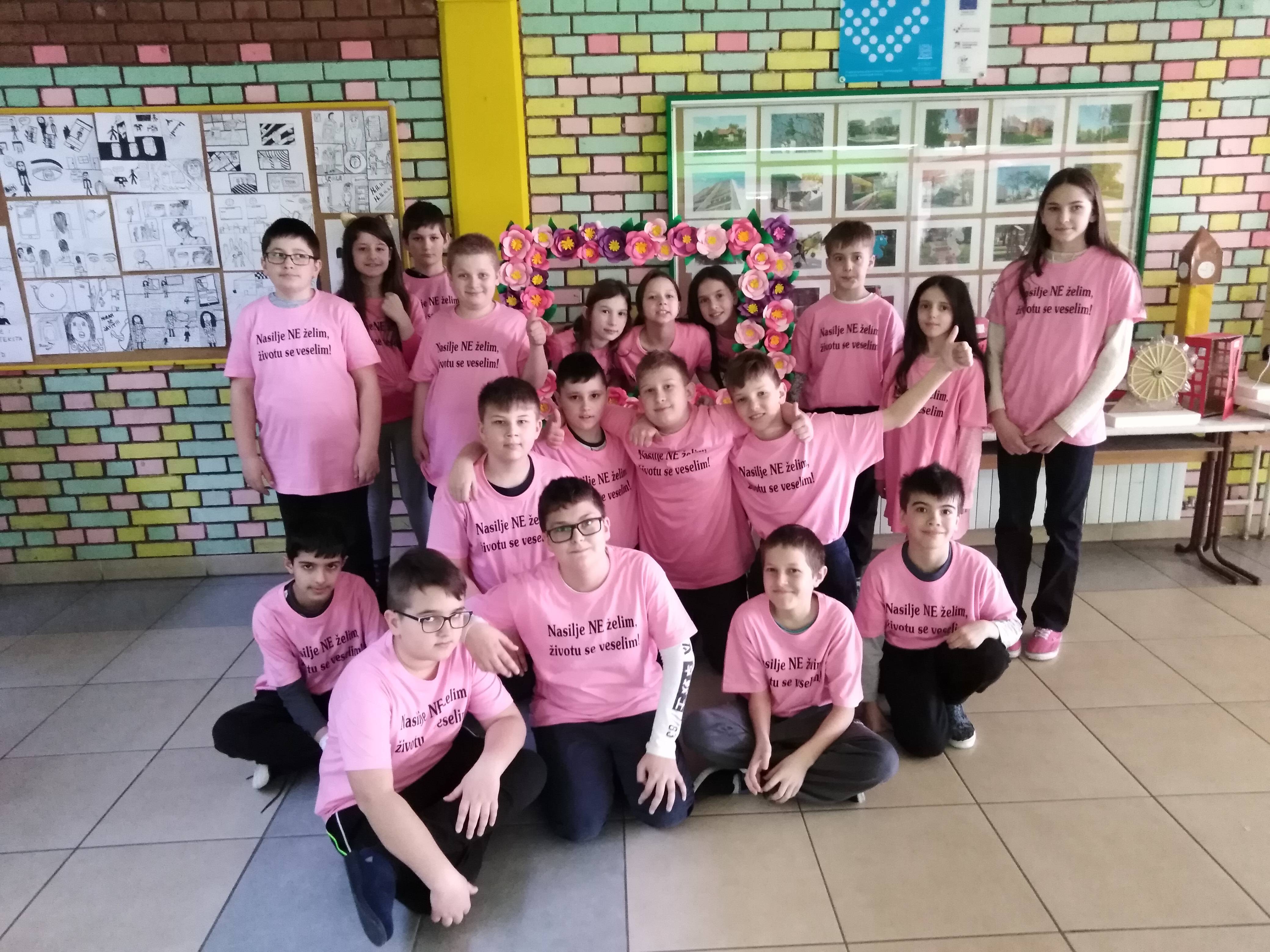 U srijedu na Dan ružičastih majica većina učenika, učitelja i ostali djelatnici nosili su nešto ružičasto. U holu škole za vrijeme velikog odmora, uz glazbu, učenici i učiteljice savršeno su otplesali uvježbani ples. Taj događaj izazvao je veliko zanimanje i doživljaj u školi jer smo pokazali da prihvaćamo ideju nulte tolarancije na nasilje.