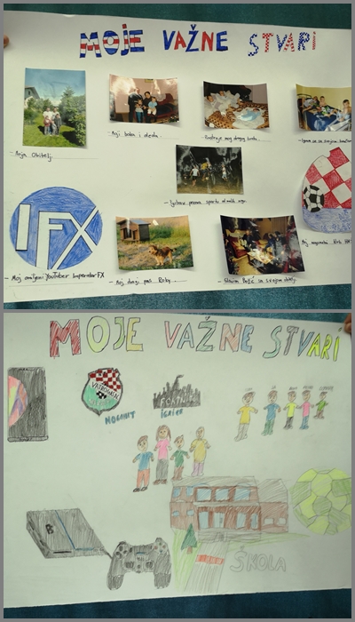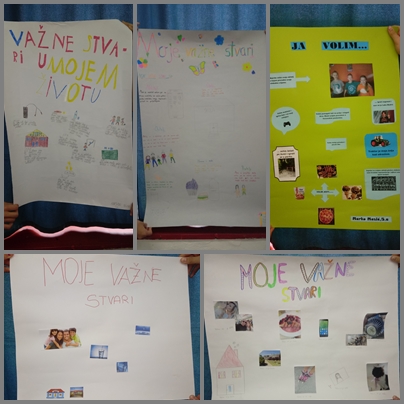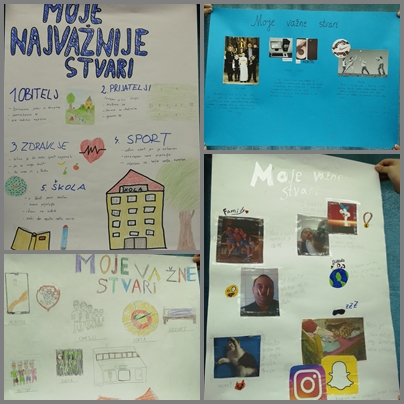 Učenici petih razreda napravili su plakate na kojima su istaknuli što je njima važno u životu. Lijepili su fotografije i predmete, crtali i pisali tekstove o važnim stvarima. Cilj je bio prikazati osobe koje vole ili im se dive, predmete bez kojih ne mogu, stvari koje vole, aktivnosti kojima se bave u slobodno vrijeme - sve što je njima važno u životu. Učenici su pripremili izlaganje u kojem su trebali ispričati sve što su napisali i zalijepili na plakat.