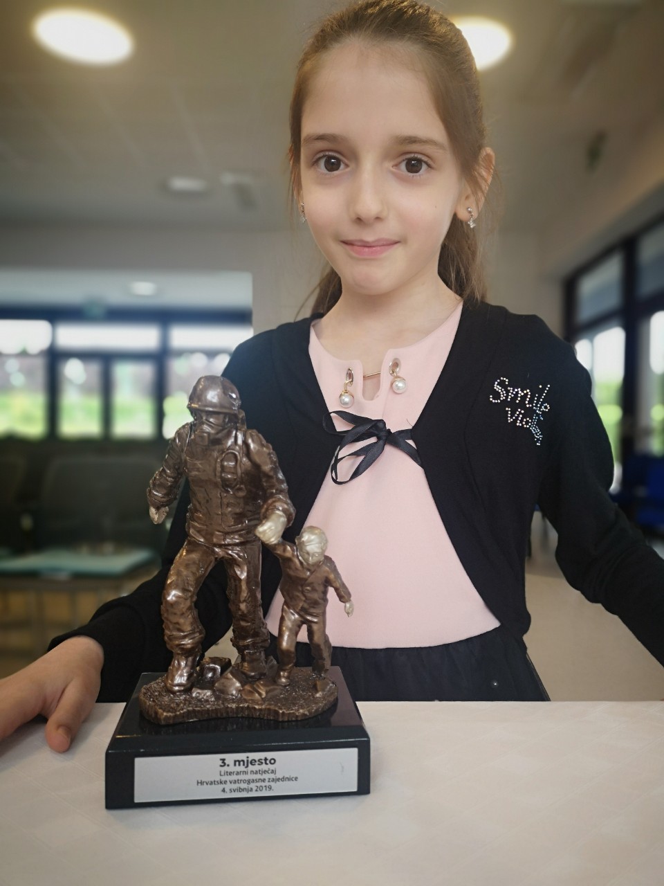 Petra Šikić učenica 4.b iz kutinske OŠ Zvonimira Franka pobjednica je u kategoriji od I. do VIII. razreda osnovnih škola literarnog natječaja s radom „Vatrogasci“. Pobjeda joj je donijela i poklon paket s mobitelom.