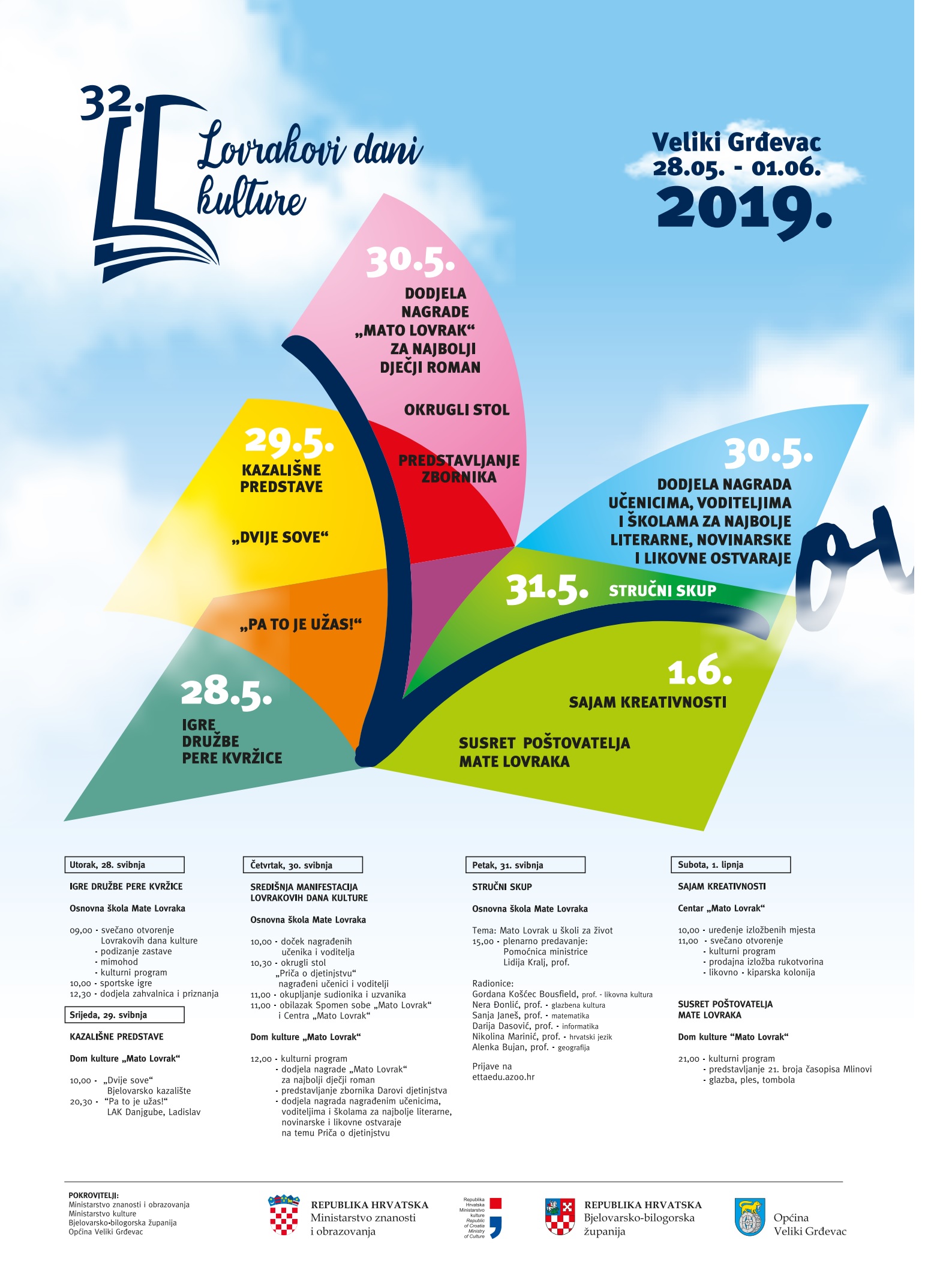 U Osnovnoj školi Mate Lovraka u Velikom Grđevcu, utorak 28. svibnja, otvoreni su 32. Lovrakovi dani kulture koje je službeno otvorila zamjenica župana Bojana Hribljan, a načelnik općine Marijan Dautanac uručio je ključ malim Lovrakovcima što su s oduševljenjem prihvatili jer sada počinje njihova vladavina. Nadaleko poznati Lovrakovi dani kulture i ove su godine otvoreni s tradicionalnim igrama Družbe Pere Kvržice u kojima su sudjelovali osnovnoškolaci s područja Bjelovarsko-bilogorske županije te gosti iz osnovne škole Ivane Brlić Mažuranić iz Ogulina i osnovnoškolci iz Mađarske. Svake godine povodom Lovrakovih dana kulture organizira se i likovno-literarni natječaj. Tom natječaju su se uključili učenici 4.b s učiteljicom Vesnom Košak. Literarni rad Moje djetinjstvo učenice Helene Horvat objavljen je u zborniku radova Darovi djetinjstva.