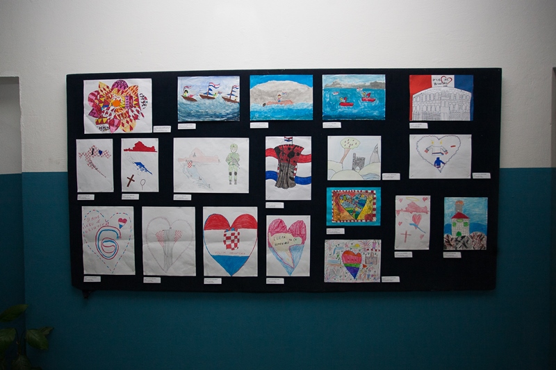 Likovno-literarni natječaj natječaj Srce za Hrvatsku pokrenut je uz suglasnost Ministarstva znanosti i obrazovanja i Agencije za odgoj i obrazovanje, uz stručnu potporu Memorijalno-dokumentacijskog centra Domovinskog rata, a pod pokroviteljstvom Ministarstva hrvatskih branitelja, Grada Imotskoga, Turističke zajednice Imota, izdavačke kuće Ljevak i Alfa. Na 1. likovno-literarni natječaj Velimir Đerek Sokol – Srce za Hrvatsku pristiglo je 111 dječjih radova, a tako i radovi učenika 4. b razreda naše škole. Natječaj nosi ime Velimira Đereka Sokola, Imoćanina, zapovjednika 1. bojne 204. vukovarske brigade, junaka Domovinskog rata. Stručno povjerenstvo za literarne i likovne uratke odabralo je po tri najuspješnija uratka u kategoriji od 1. do 4. razreda te tri u kategoriji od 5. do 8. razreda. Uoči Dana sjećanja na žrtvu Vukovara u predvorju Osnovne škole „Stjepan Radić“ u Imotskom održan je svečani program i dodjela nagrada pobjednicima. Program je započeo himnom školskog zbora, a potom su pozdravne riječi uputili ravnatelj OŠ „Stjepan Radić“ Imotski gosp. Marko Mendeš i gradonačelnik Ivan Budalić nakon čega je dr. sc. Darjan Godić iz Instituta za povijest održao predavanje o počecima rata u Vukovaru. Svečani program završio je pjesmom školskog zbora Moja domovina pod ravnanjem prof. Sande Medić Grančić. Posjetitelji su nakon toga imali priliku razgledati sve pristigle likovne i literarne radove koje je postavila prof. Bruna Carev te pogledati izložbu Učionica dječaka s osmijehom.