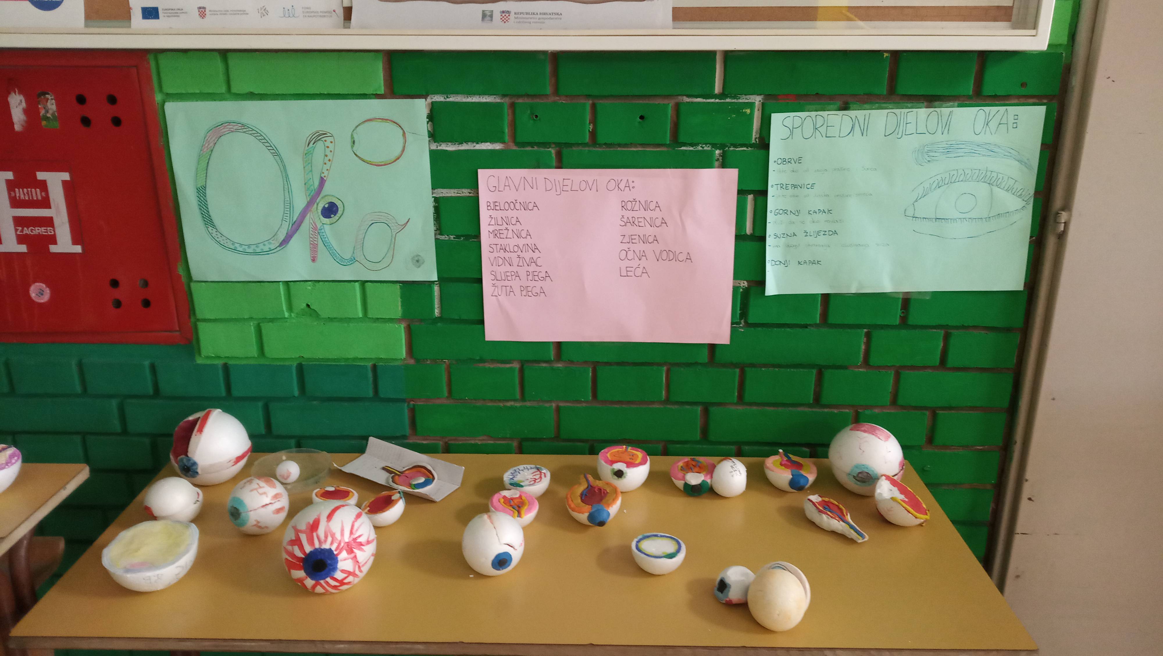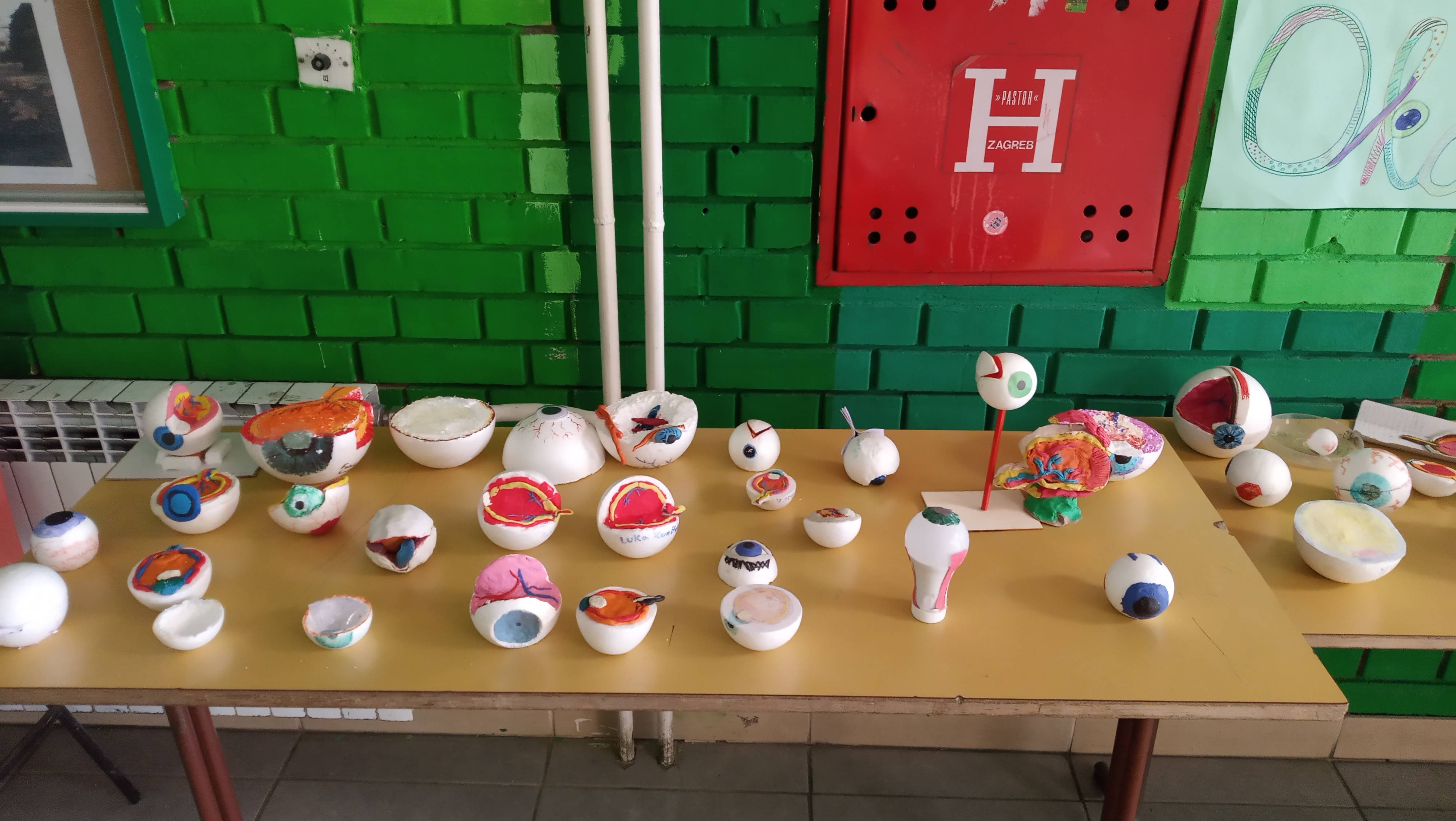 Učenici osmih razreda kreativno i marljivo izradili su modele oka. Naučili su imenovati glavne i sporedne dijelove oka te opisati uloge pojedinih dijelova. Pogledajte njihove modele.