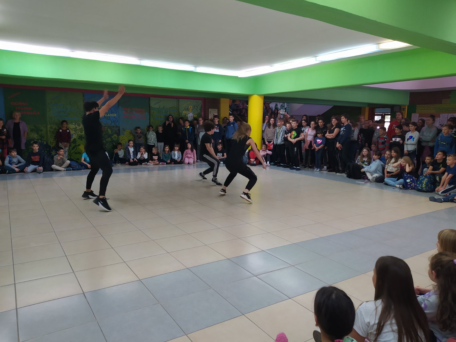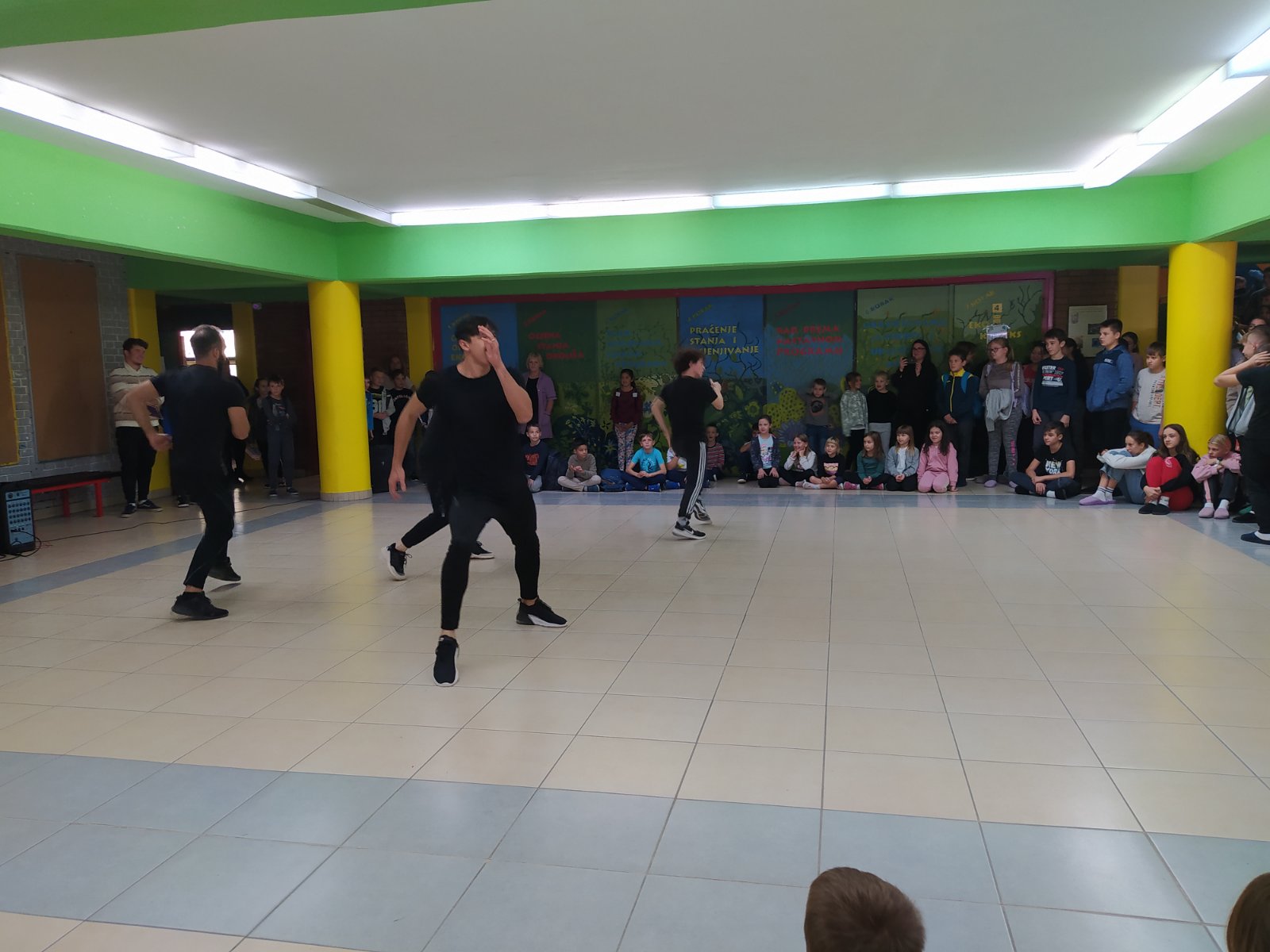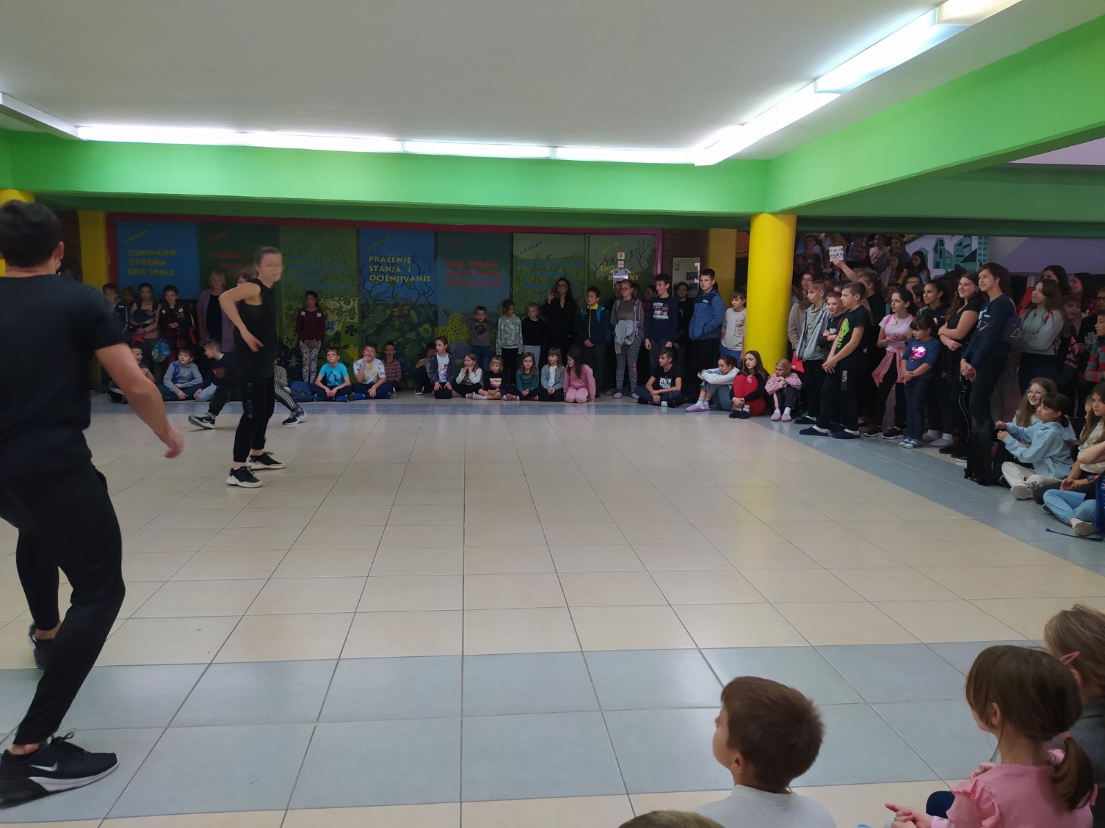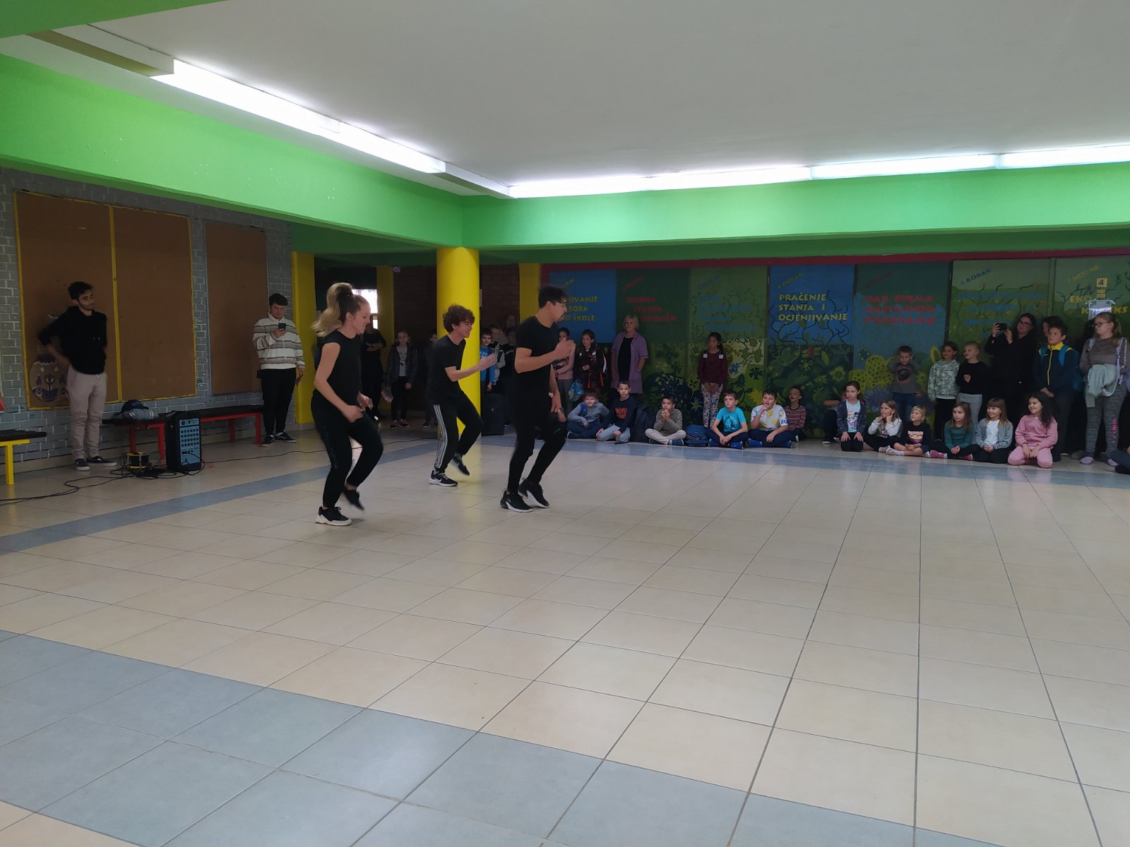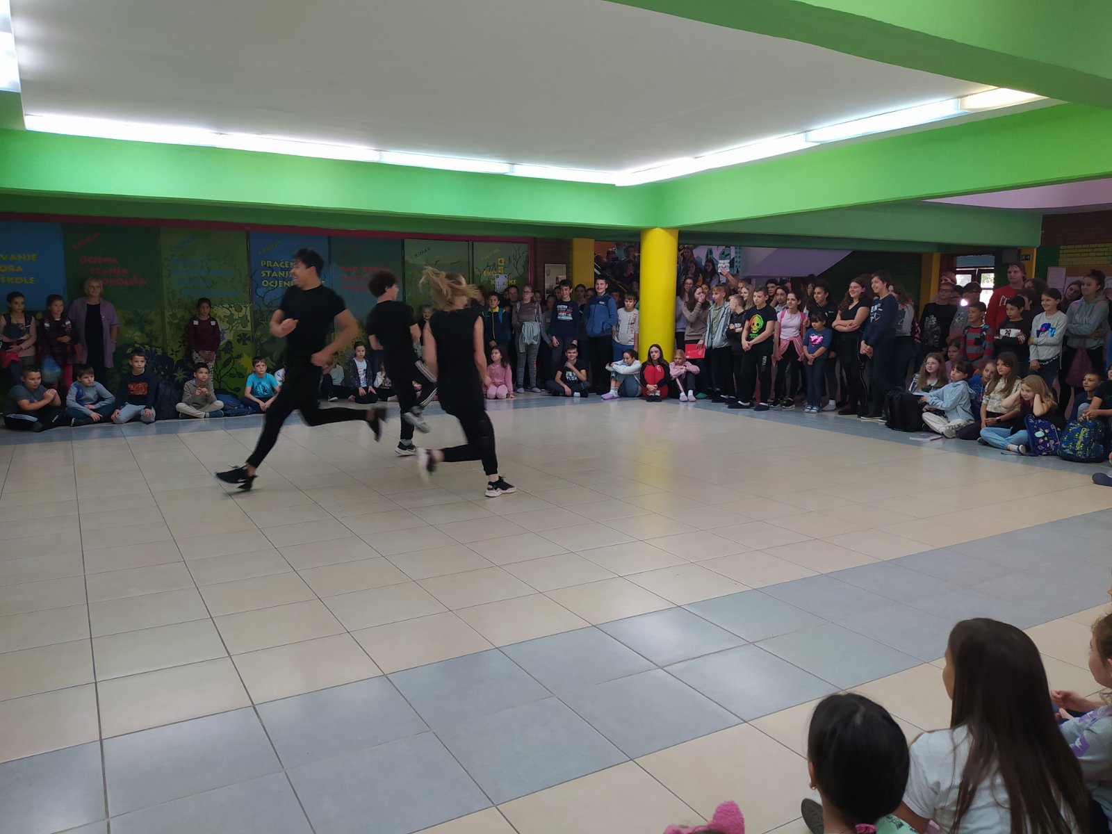 Tom su prilikom učenike pozvali na njihovu skorašnju predstavu koja će se održati u POU Kutina. Također su podijelili letke učenicima koji su zainteresirani za upis u njihovu plesnu školu te ih motivirali za bavljenje plesom.