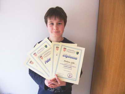 Prvu pobjedu ostvario je u Petrinji iz hrvatskoga jezika s mentoricom Danicom Ćorić. U Sisku je pobijedio tri puta, na natjecanju iz geografije s mentoricom Ankom Puljarić, iz kemije s mentoricom Brankom Košćak te iz fizike s mentoricom Manuelom Koch. Uz mentoricu Pavicu Vuger jučer je u Kutini osvojio prvo mjesto i na natjecanju iz matematike. Vrijedno je spomenuti i dva Mislavova četvrta mjesta, iz engleskog i njemačkog jezika, što je najbolji plasman kutinskih osmaša ove godine.