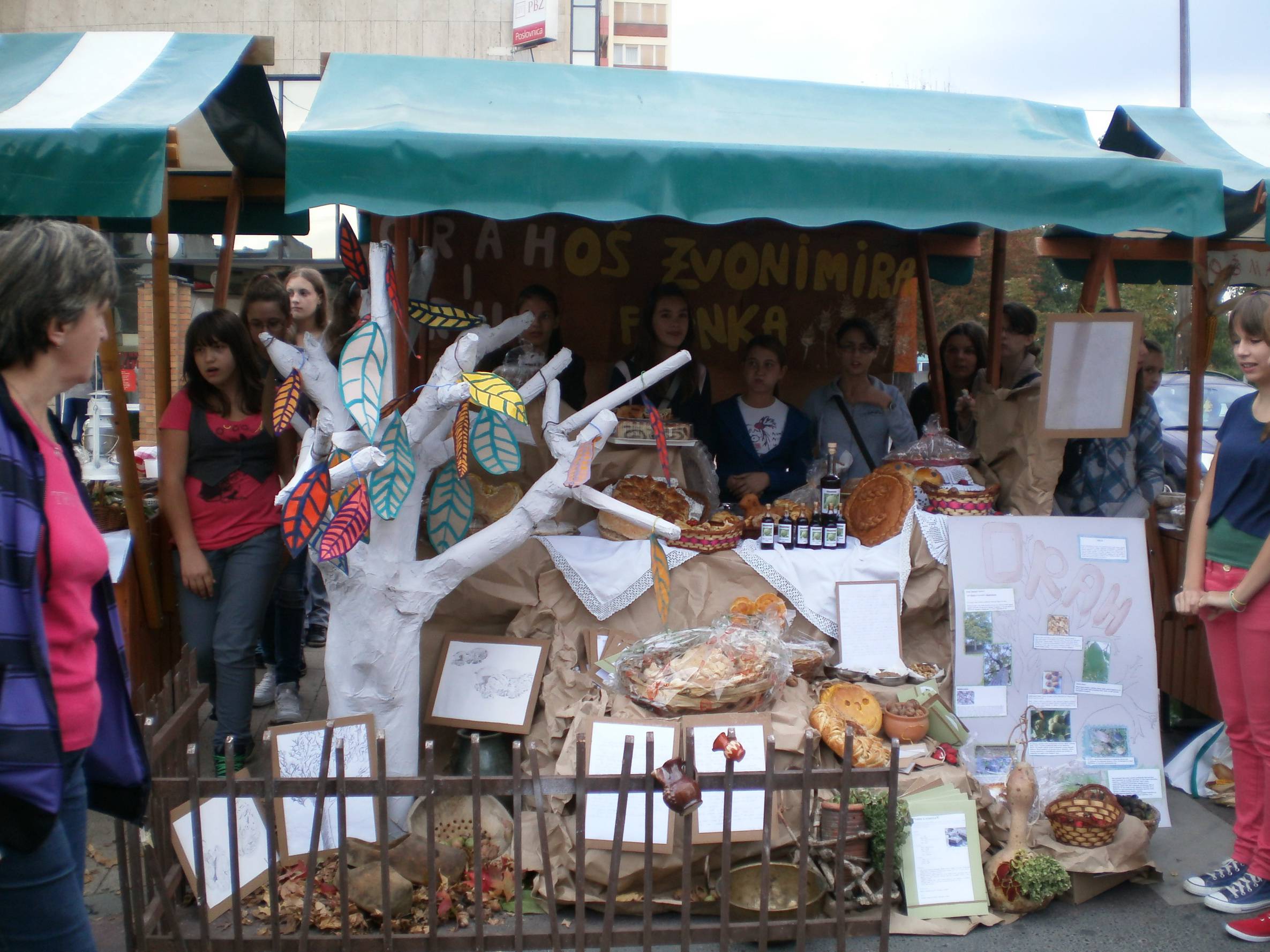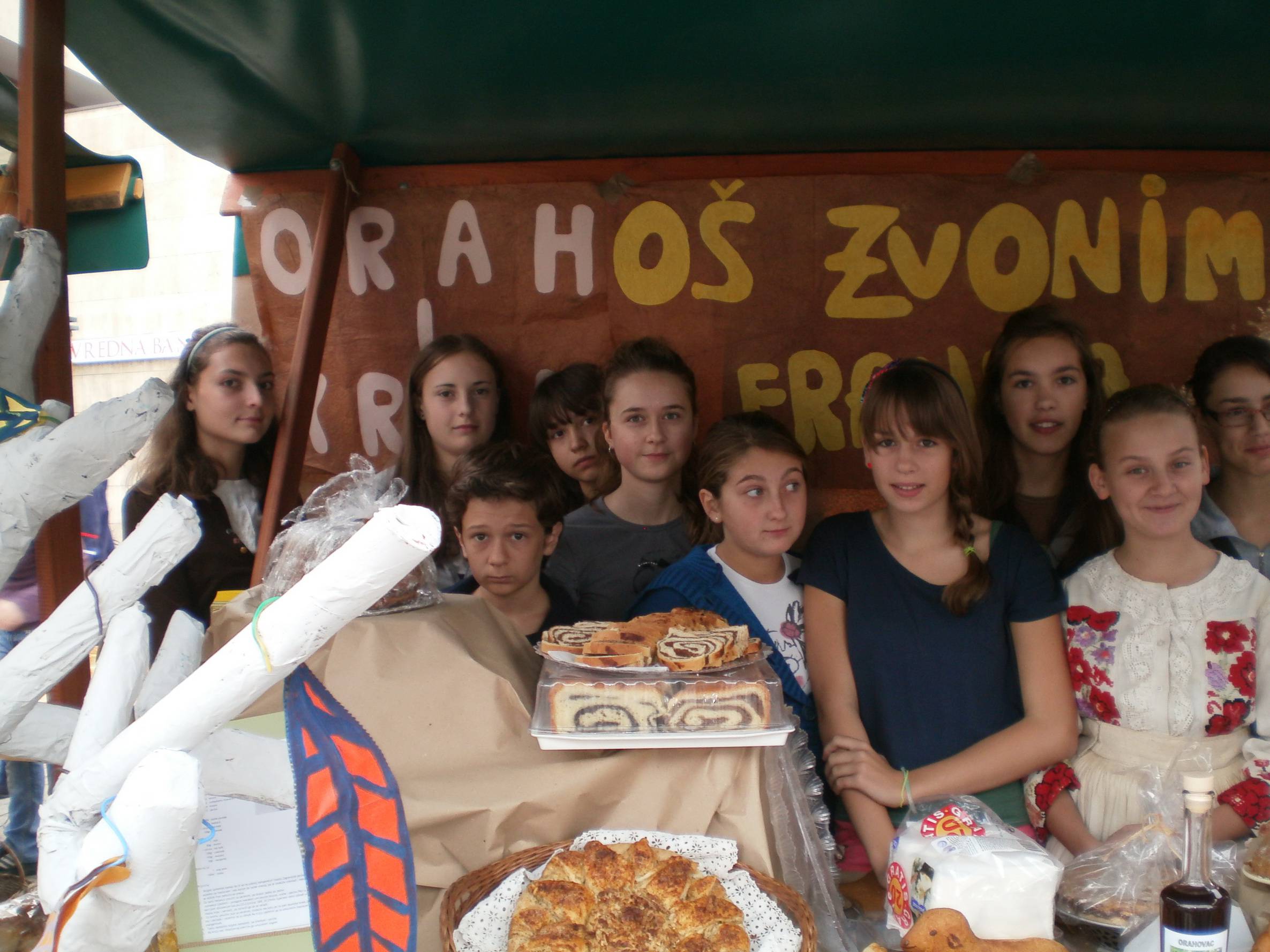 OŠ Zvonimira Franka uredila je štand na temu KRUH I ORAH. Tu je zaista bilo raznovrsnih kolača od oraha, piće orahovac, jako finog kruha, literarnih radova s temom kolača i oraha.