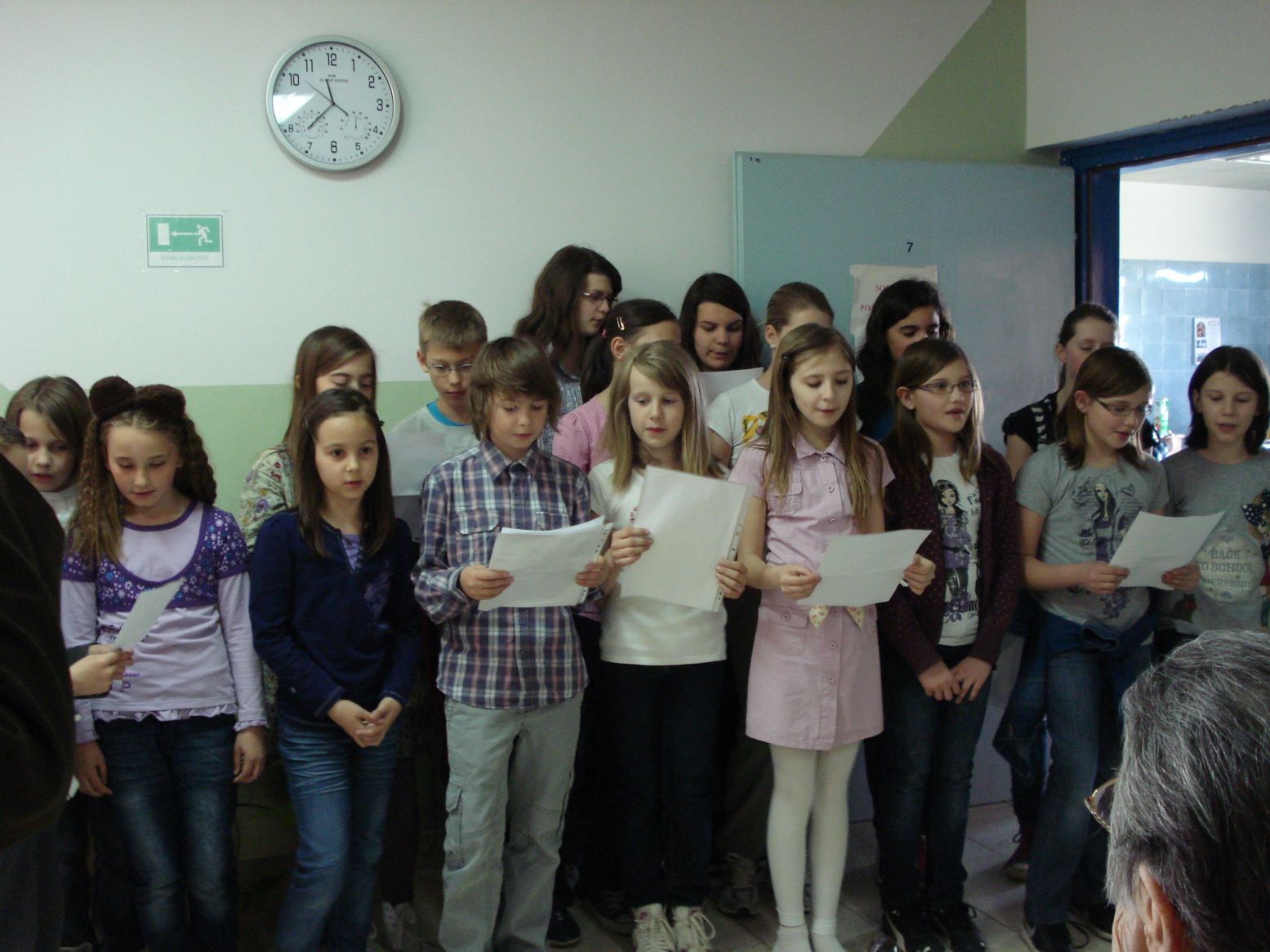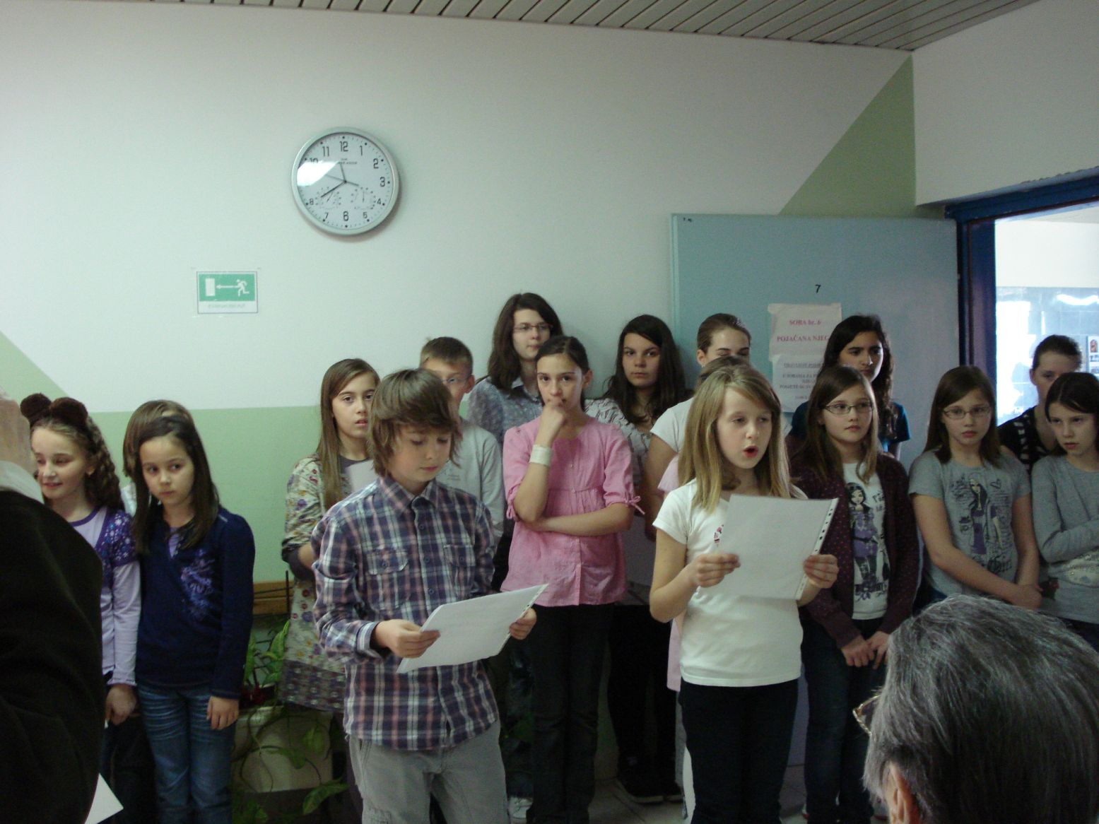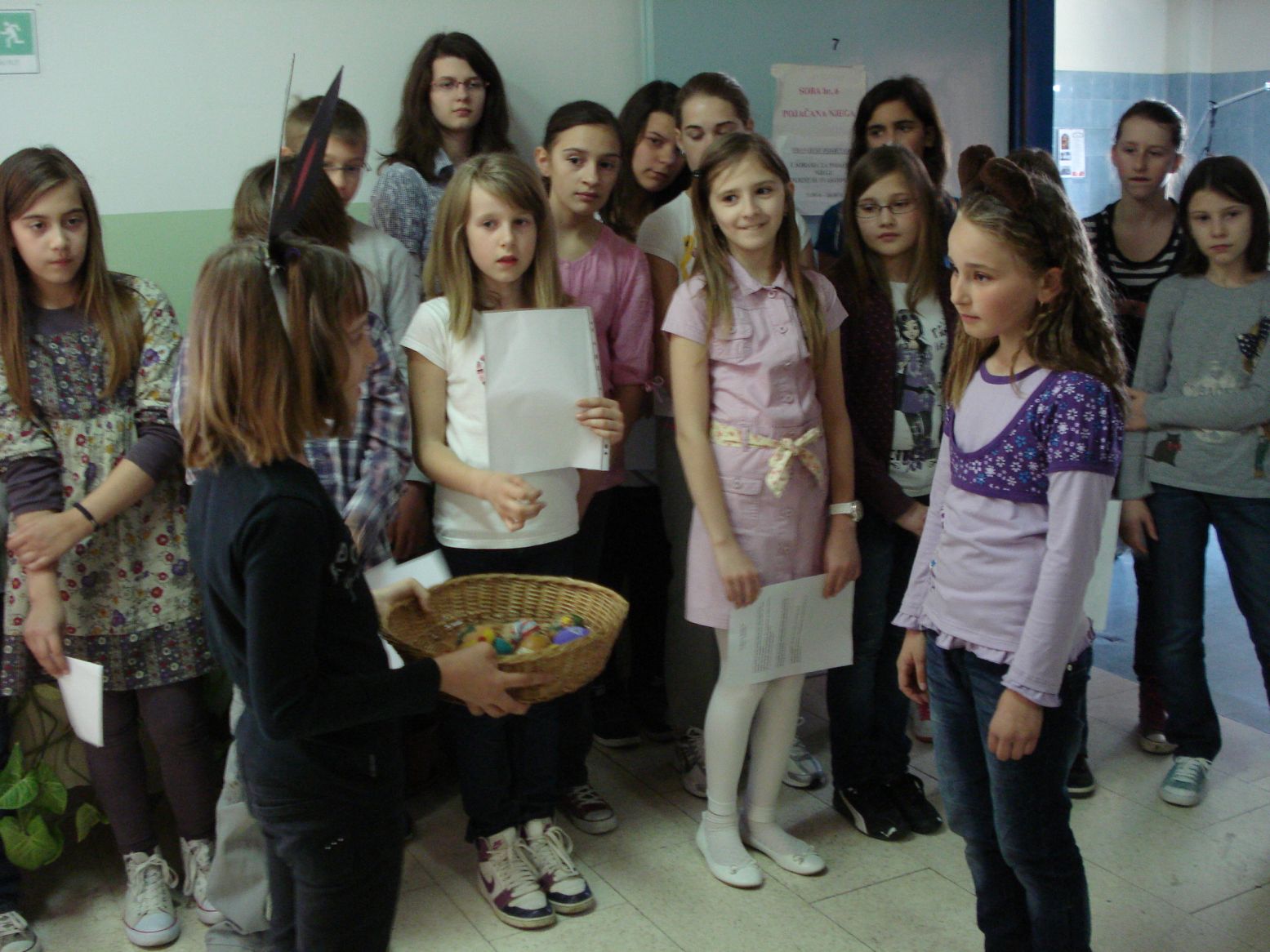 Učenici viših razreda i njihove voditeljice nastavnice Zdenka Desić i Branka Hecer posjetili su 28. ožujka 2012. god. Dom za starije i nemoćne osobe "Zlatne godine" u Kutini. Prigodnim programom i izrađenim pisanicama razveselili su štićenike Doma.