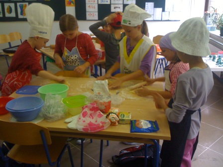 Svi učenici su u srijedu 9. 10. 2013. pekli kolače u školskoj kuhinji. Podijelili su se u 4 skupine i svaka skupina je u dogovoru s roditeljima izabrala recept i donijela namirnice i potreban pribor.