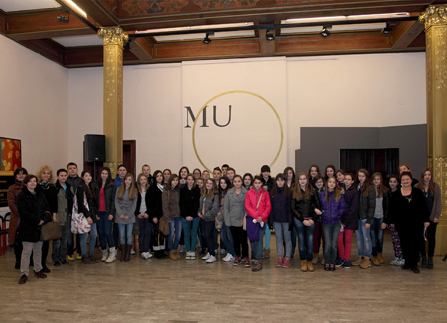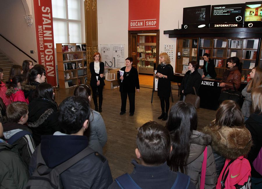 Četrdesetak učenika u pratnji nastavnice iz povijesti i nastavnice iz likovnog posjetilo je Muzej za umjetnost i obrt kako bi razgledali izložbu Radovan Tajder: Arhitektura / Arhitekt.