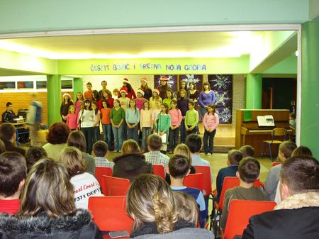 Nastupio je Veliki i Mali pjevački zbor, Mala iVelika ritmika nižih razreda, Dramska skupina nižih razreda, recitiralo se i čitali literarni radovi na temu Božića.