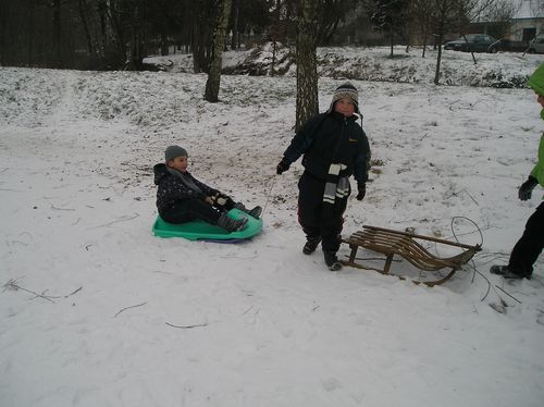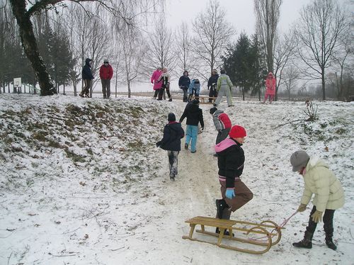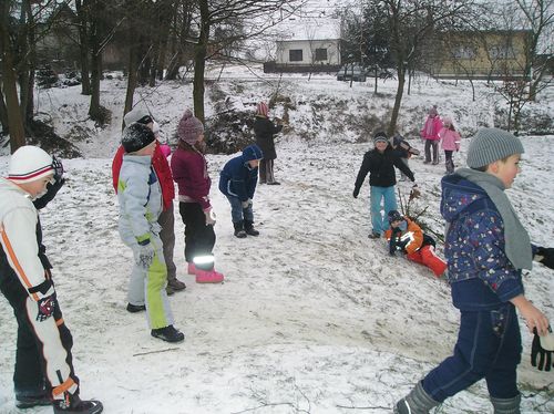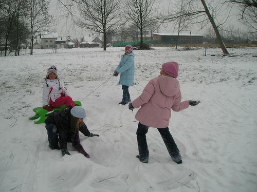 Učenici IIa razreda nastavili su započete igre na snijegu i na školskom igralištu.Bilo je to pravo natjecanje u sanjkanju i spuštanju niz brijeg.