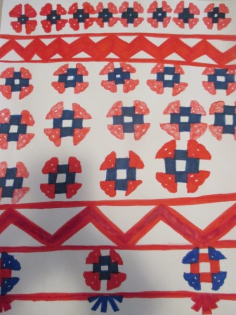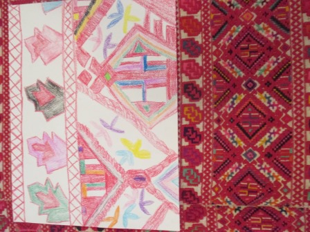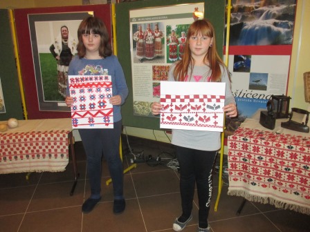 U školskoj knjižnici su se tijekom održavanja izložbe TRADICIJSKO RUHO MOSLAVINE, BANOVINE I HRVATSKE POSAVINE odvijale i likovne radionice ORNAMENT.