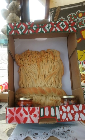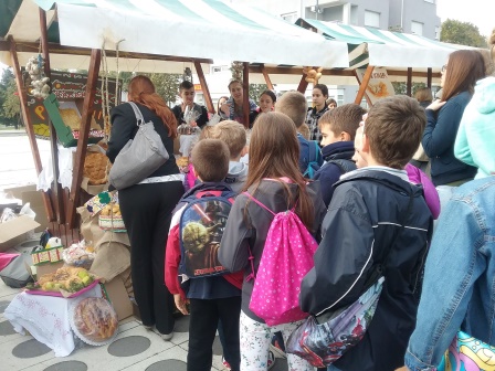 Izložbeni prostor učenici su ukrasili svojim rukotvorevinama koje su izradili na likovnoj skupini, a upotpunili su ih domaćim kruhom i kiflicama koje su izradile njihove bake i mame. Slika 2, Slika 3, Slika 4