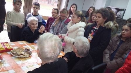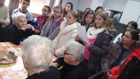 Naši su im učenici otpjevali nekoliko pjesmica i bake malo razveselili. Učenica ,6. a r., Sara Bagić recitirala je pjesmicu o baki, a učenica Katja Starčić, 6. a r., pročitala je pisani sastav o svojoj prabaki.