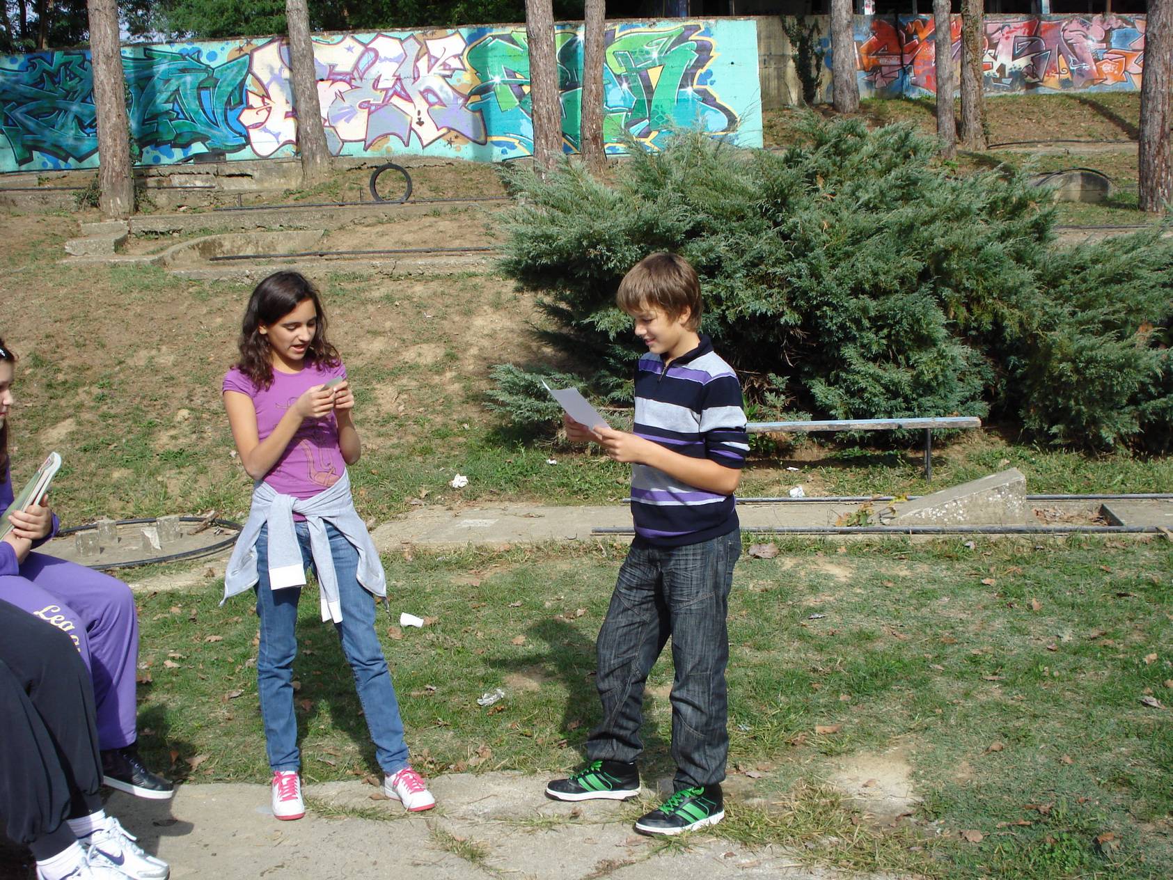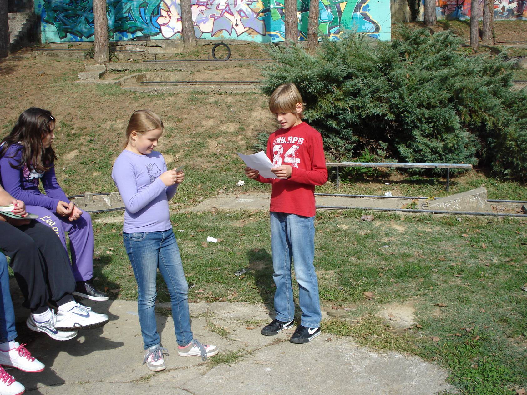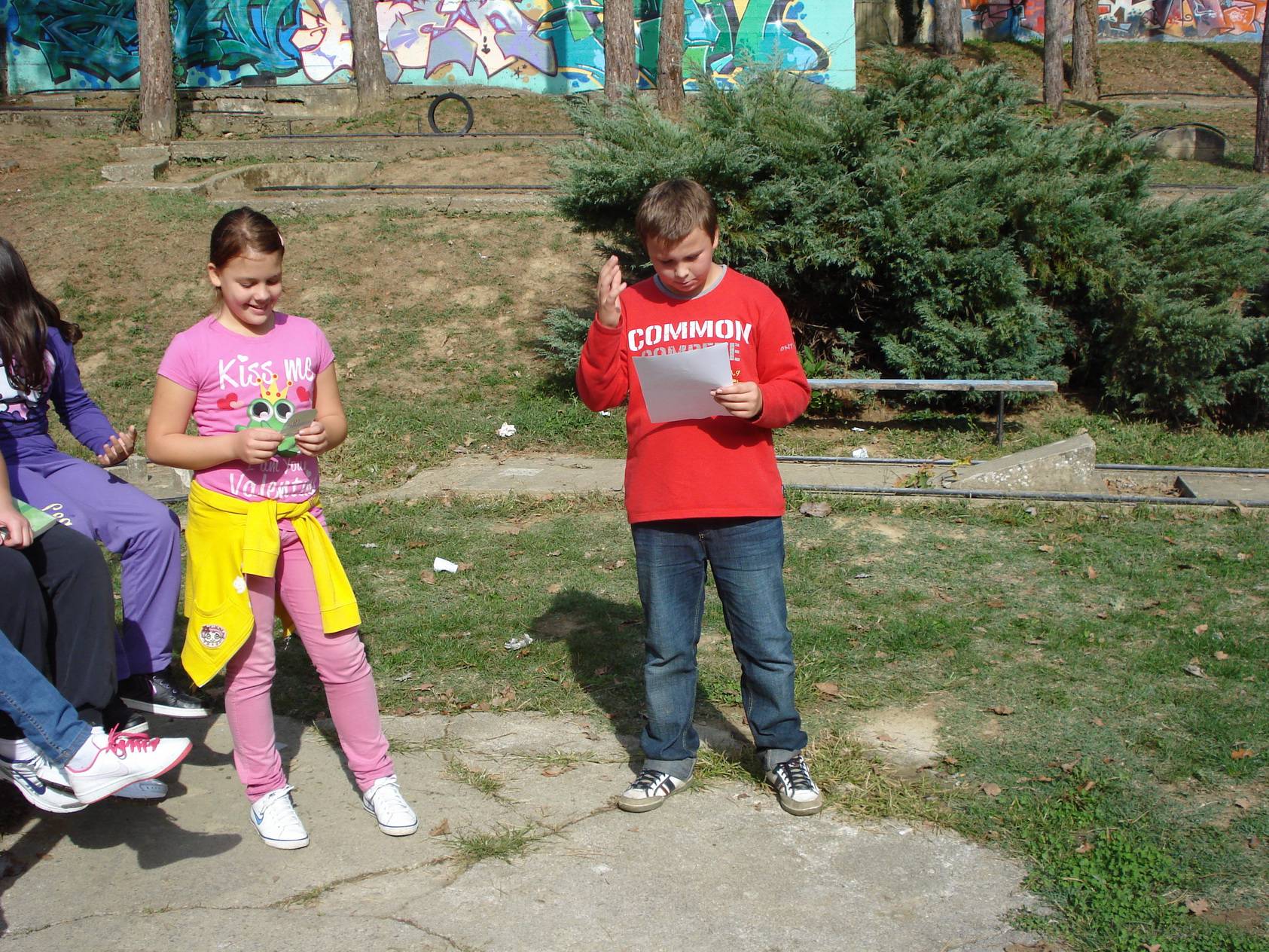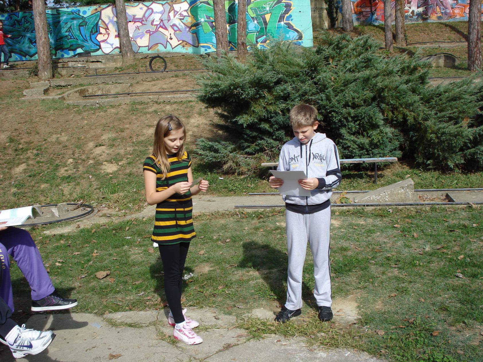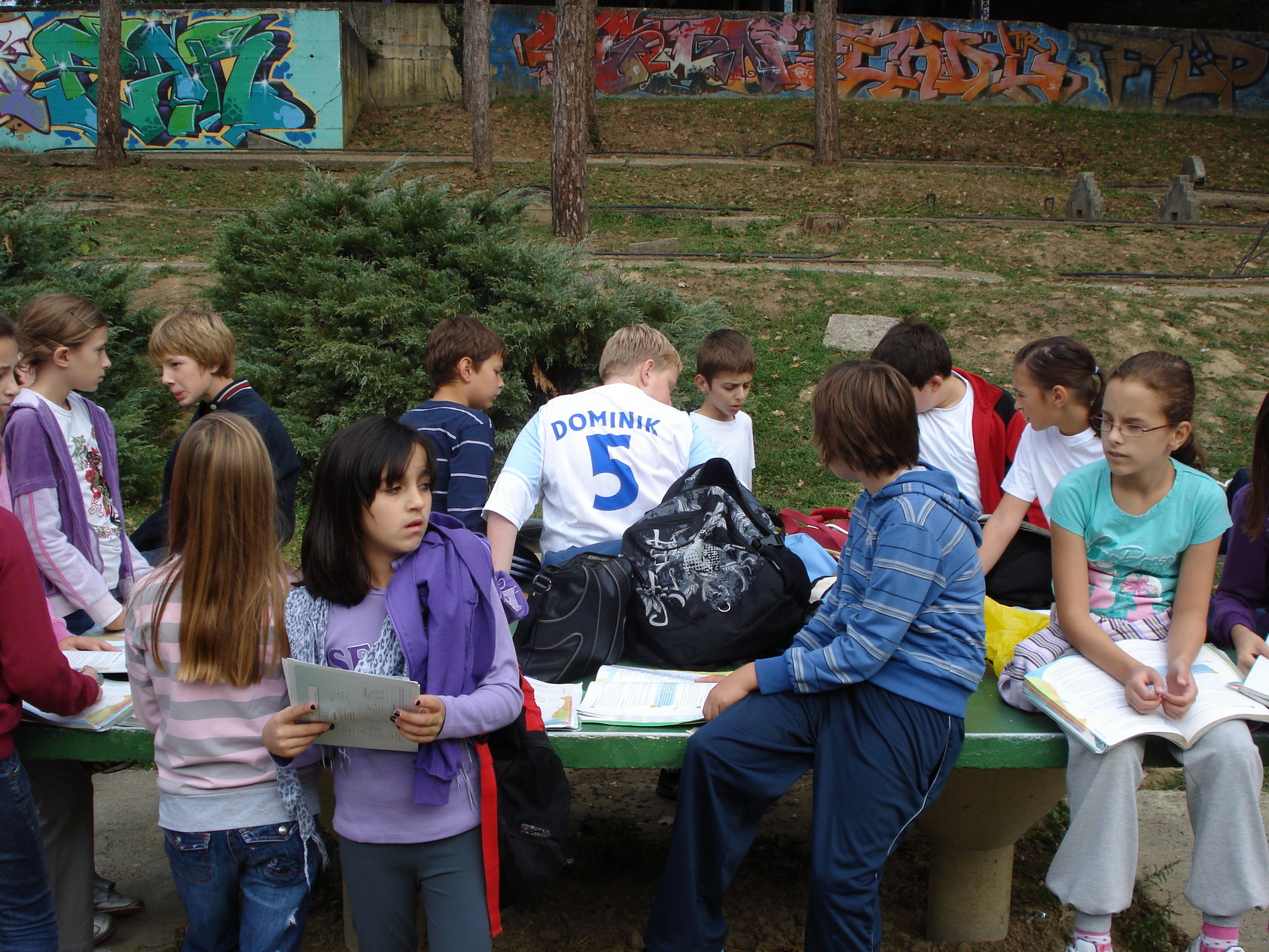 Učenici 5. r. su 3 školska sata proveli u prirodi. Nastava hrvatskog jezika i tjelesne i zdravstvene kulture 12. listopada 2011. g. je održana na terenu- kraj bazena u Kutini.