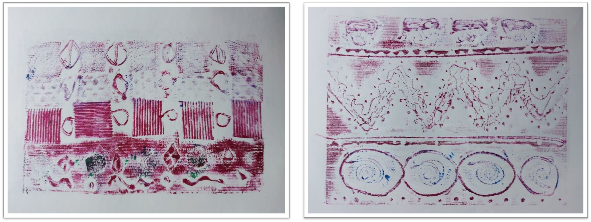 Zadatak je bio kreirati ornament u boji inspiriran hrvatskom folklornom i tradicijskom etnografskom baštinom u grafičkoj tehnici visokog tiska kolagrafija koristeći materijale i plohe različitih reljefnih površina/tekstura.
