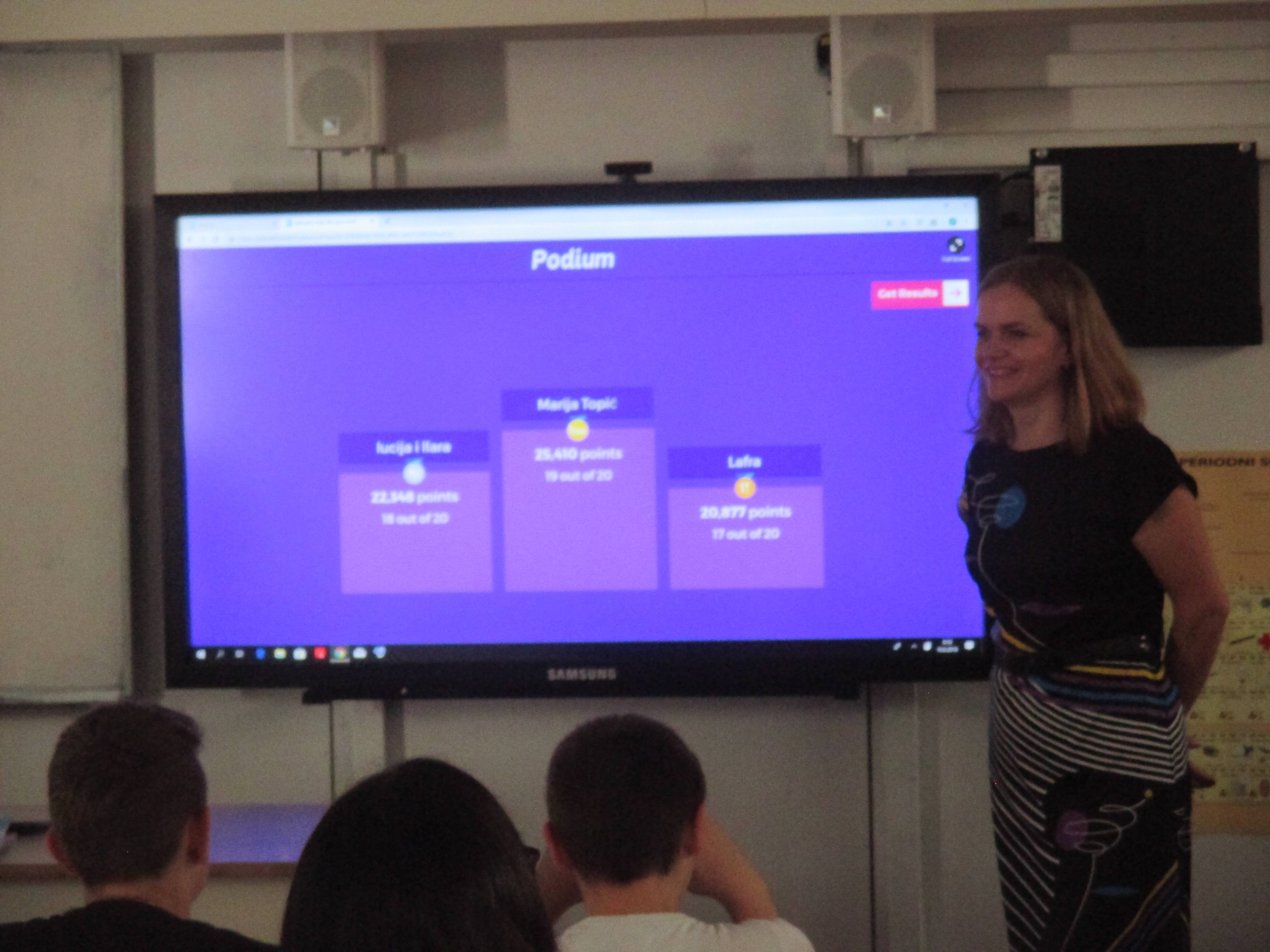Tijekom lipnja 2019. učenici 7.c sudjelovali su u kvizu Kahoot, vezanom uz poznavanje periodnog sustava elemenata. Kviz je vodila učiteljica kemije Helena Štimac, dipl. ing. prehrambene tehnologije. U Projektu je i učiteljica biologije Marina Malnar, prof. biologije i kemije. Voditeljica je knjižničarka Ana Demut, dipl. knjižničar, stručni suradnik savjetnik.