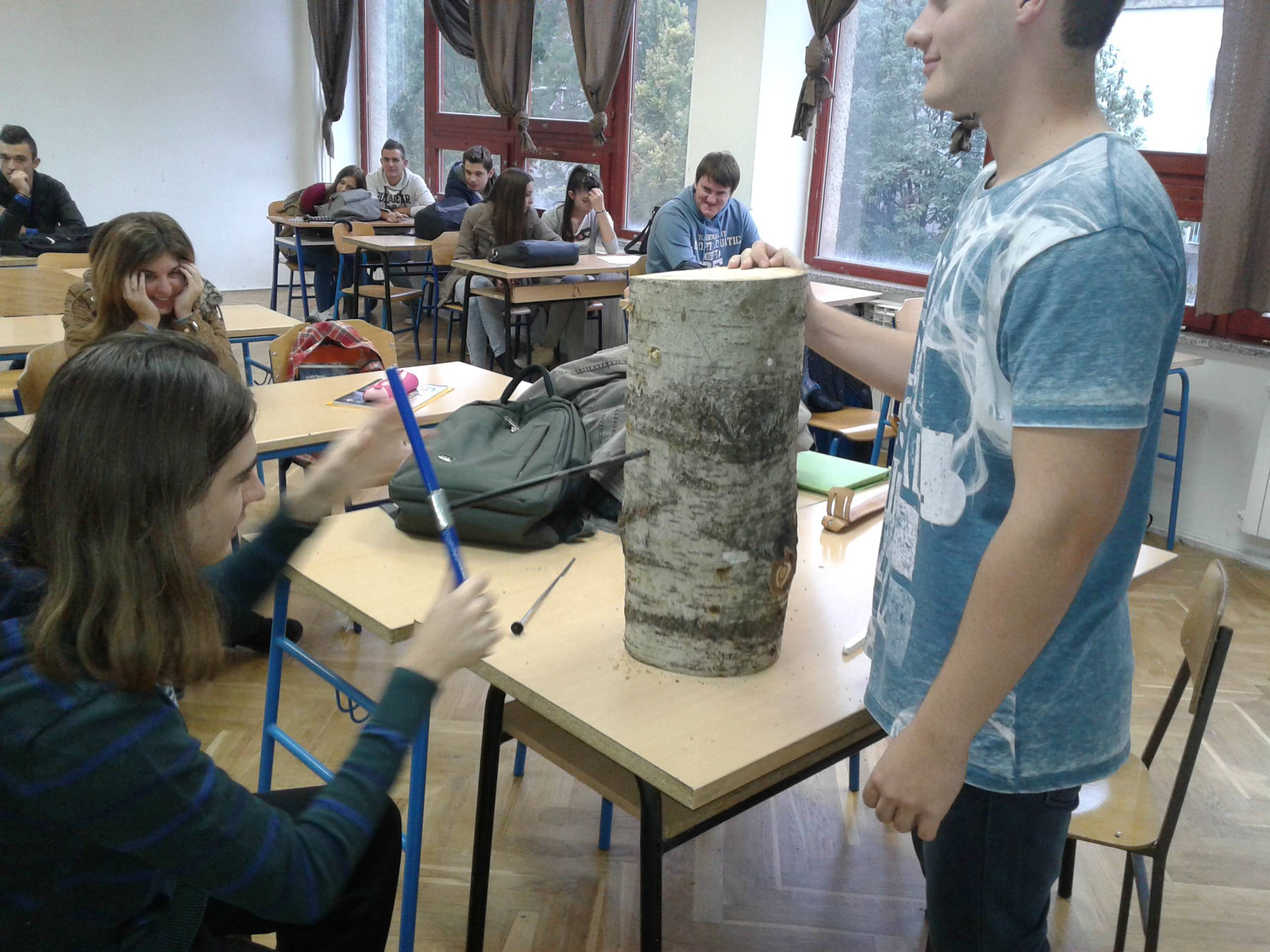 Kako odrediti debljinski prirast stabla, na praktičnom primjeru su naučili učenici 4.c razreda, tehničari zaštite prirode. Učenici su vadili izvrtke drva pomoću Presslerovog svrdla, instrumenta za brze i pouzdane rezultate prilikom procjene dobi, prirasta i zdravlja stabala. Svaki je učenik izvadio po jedan izvrtak, a na osnovu izvrtaka određivati će debljinski prirast stabla. Sve su nadgledali njihovi nastavnici praktične nastave Ivan Cindrić i Milan Ječmenica.