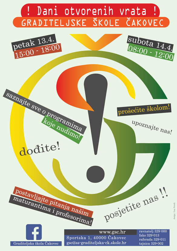 Pozivamo sve učenike osmih razreda i njihove roditelje na Dane otvorenih vrata Graditeljske škole Čakovec koji će se održati u petak, 13. travnja od 15,00 do 18,00 sati te u subotu, 14. travnja od 8,00 do 12,00 sati.