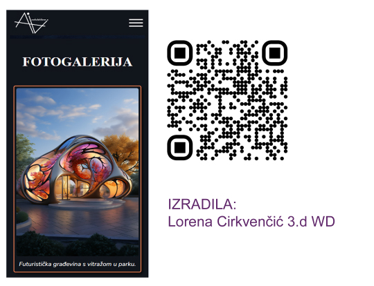 Globalna tema vježbe u okviru predmeta Web projekti je bila AI arhitektura budućnosti, a učenici 3.d razreda trebali su izraditi responzivno web rješenje uz primjenu zadanog broja fotografija u izradi fotogalerije i zadanog teksta uz usvojenu tehnologiju (HTML/CSS/JS).