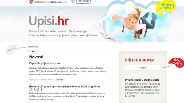U Ministarstvu znanosti, obrazovanja i sporta u ponedjeljak, 15. travnja s početkom u 10 sati, održat će se konferencija za novinare na kojoj će ministar dr. sc. Željko Jovanović pustiti u rad mrežnu stranicu www.upisi.hr, što će označiti službeni početak e-upisa.