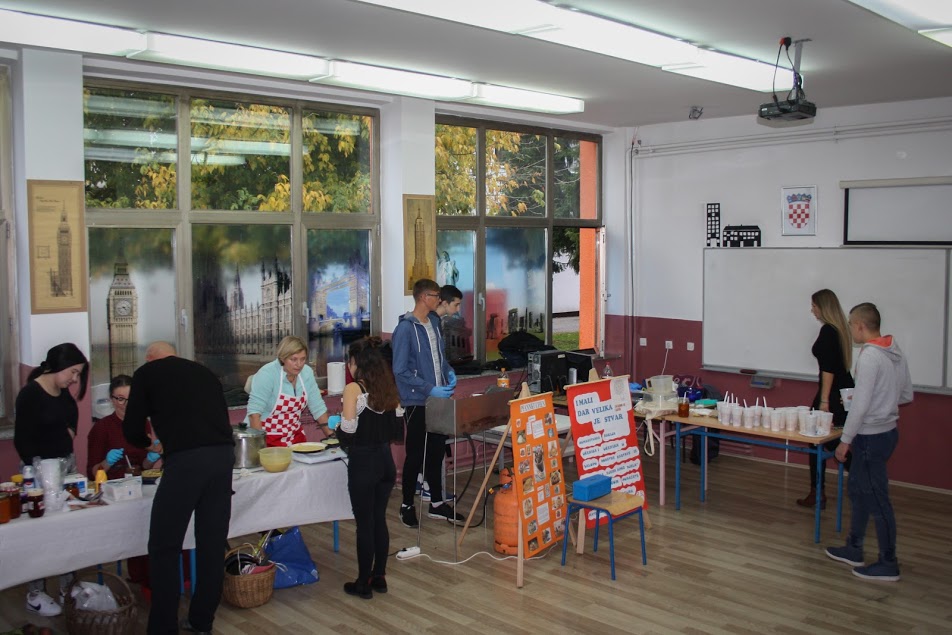Ali najviše posjetitelja okupilo se na Palačinka partyju, humanitarnoj akciji u sklopu dodatne nastave iz Vjeronauka, gdje su učenici i profesori zajedno pekli palačinke i posluživali voćnu salatu. Dobrovoljni prilozi skupljeni u akciji donirat će se učenicima slabijeg imovinskog statusa.