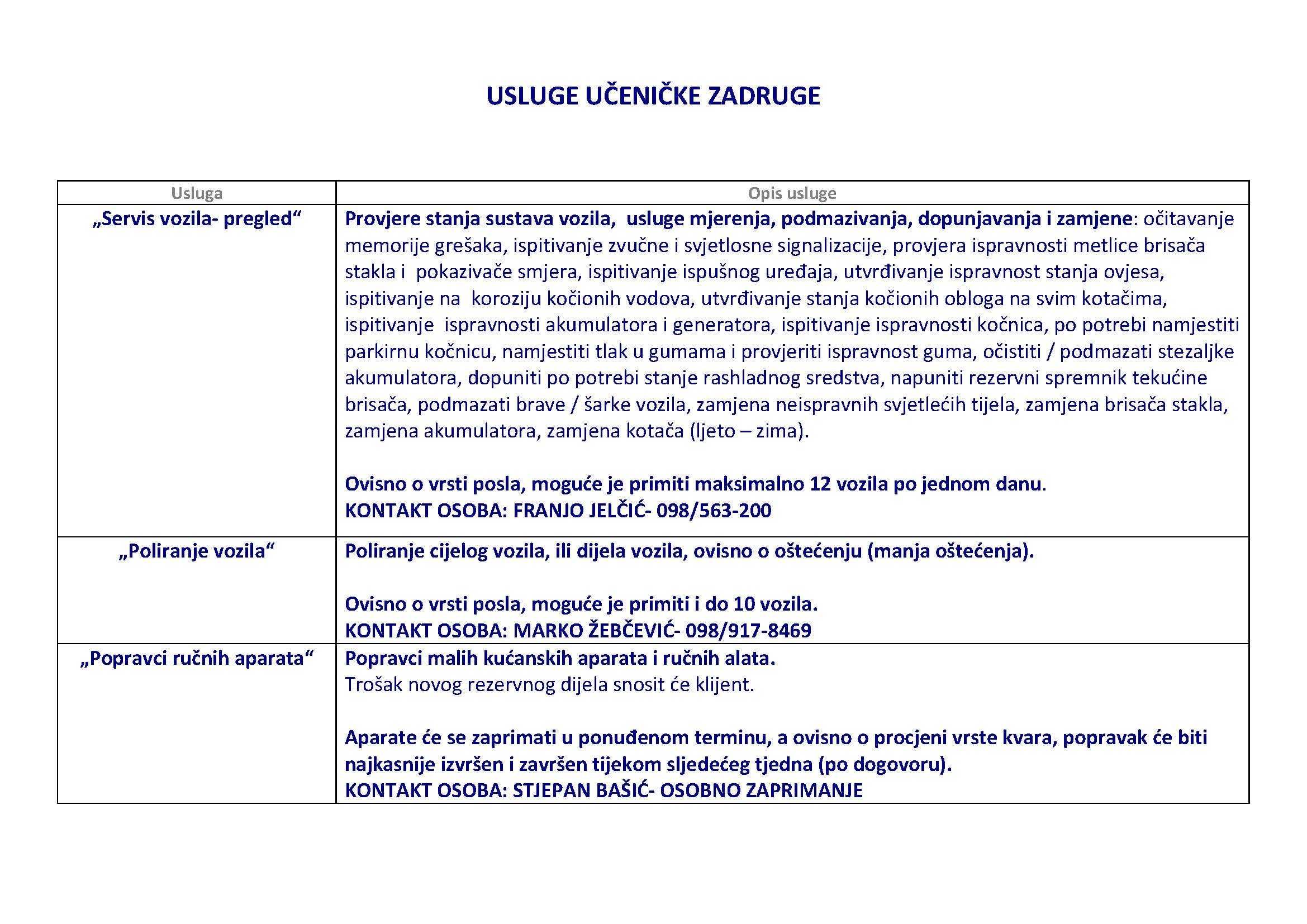 Također, našim sugrađanima nudimo mogućnost servisa i poliranja vozila, te popravke malih kućanskih aparata i ručnih alata.