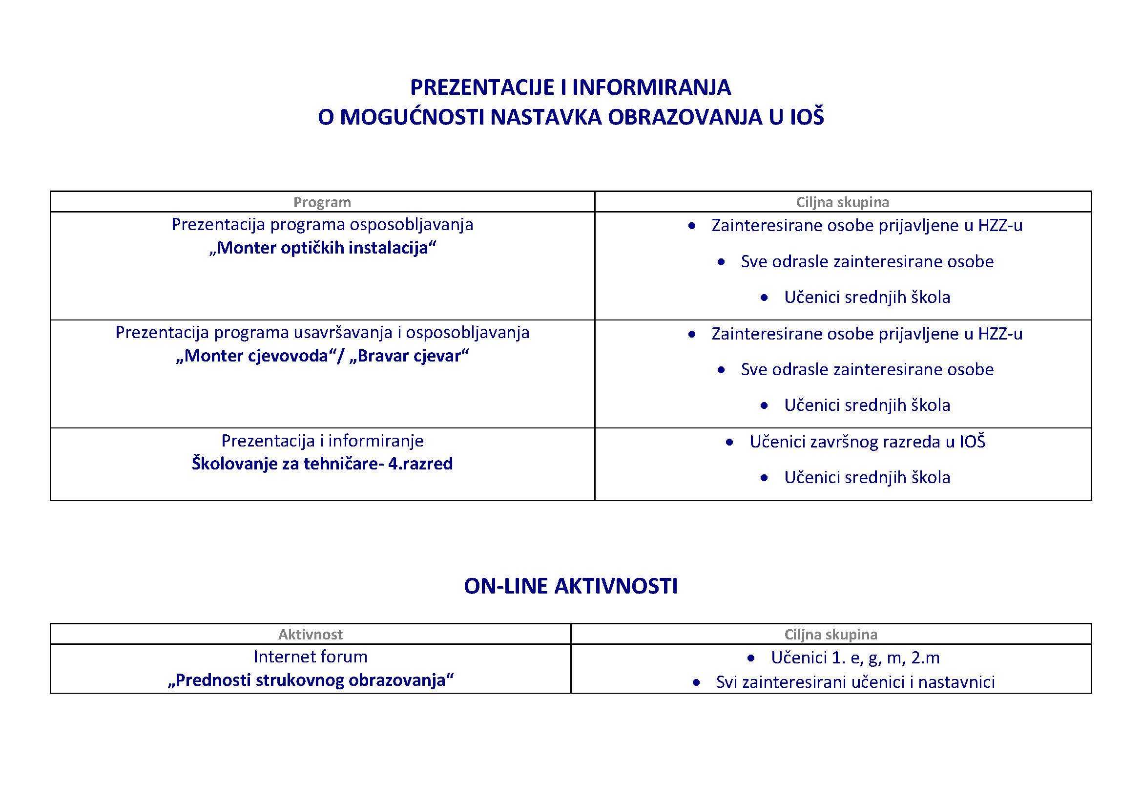 Organiziramo aktivnosti za naše buduće, sadašnje i bivše učenike, ali i za odrasle koji žele usavršiti svoje strukovne vještine.