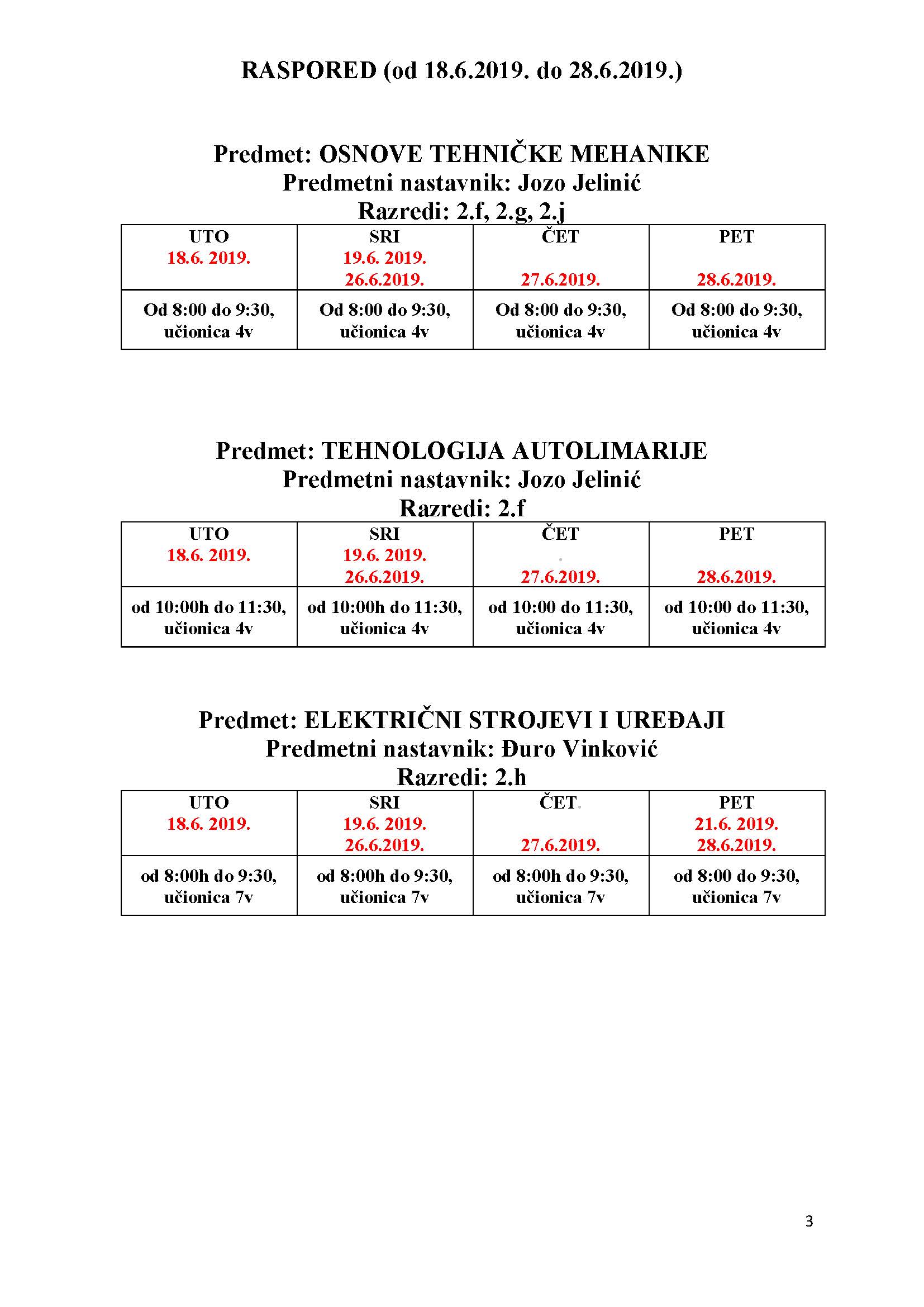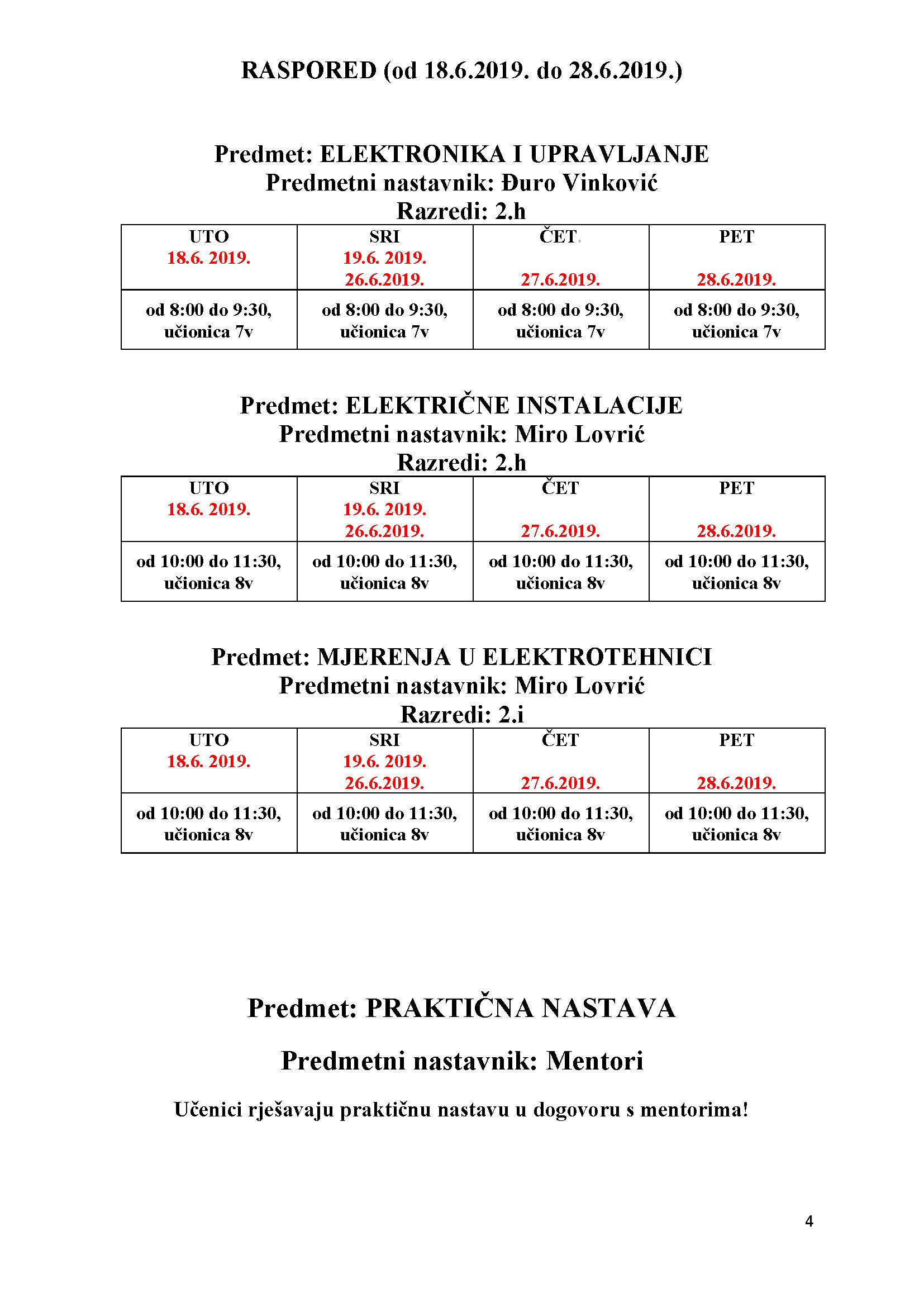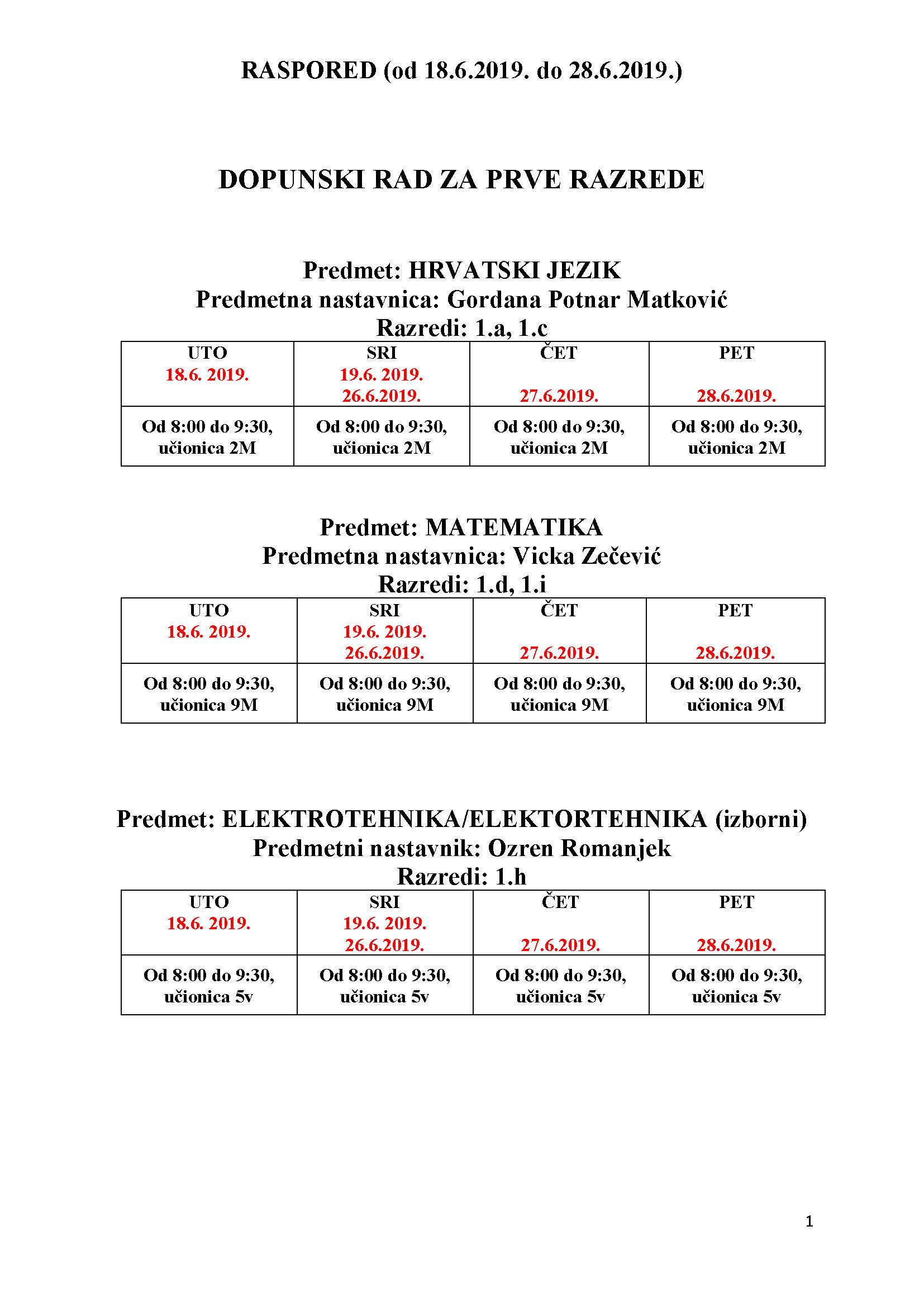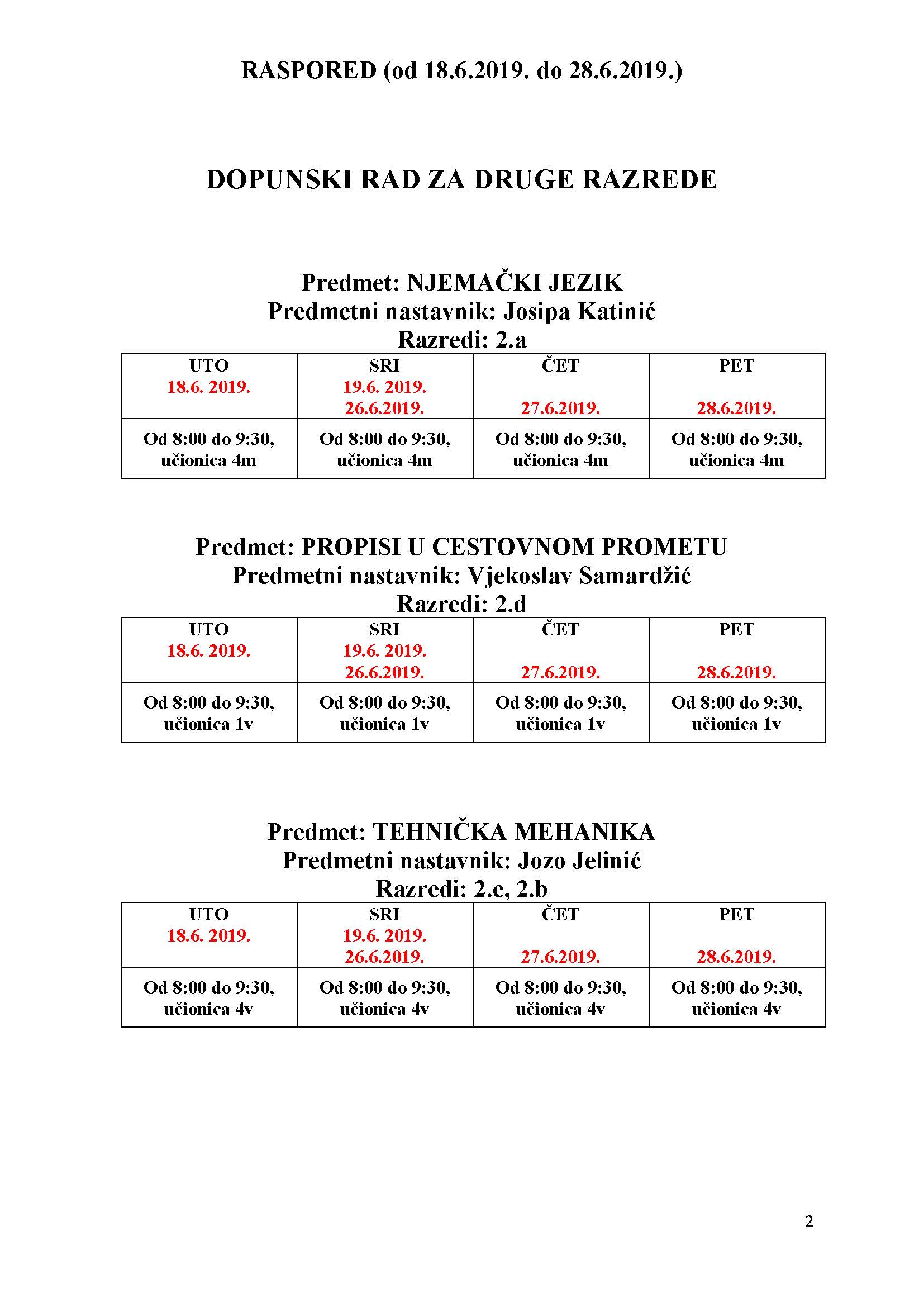Raspored dopunskog rada nalazi se u prilogu ove obavijesti.