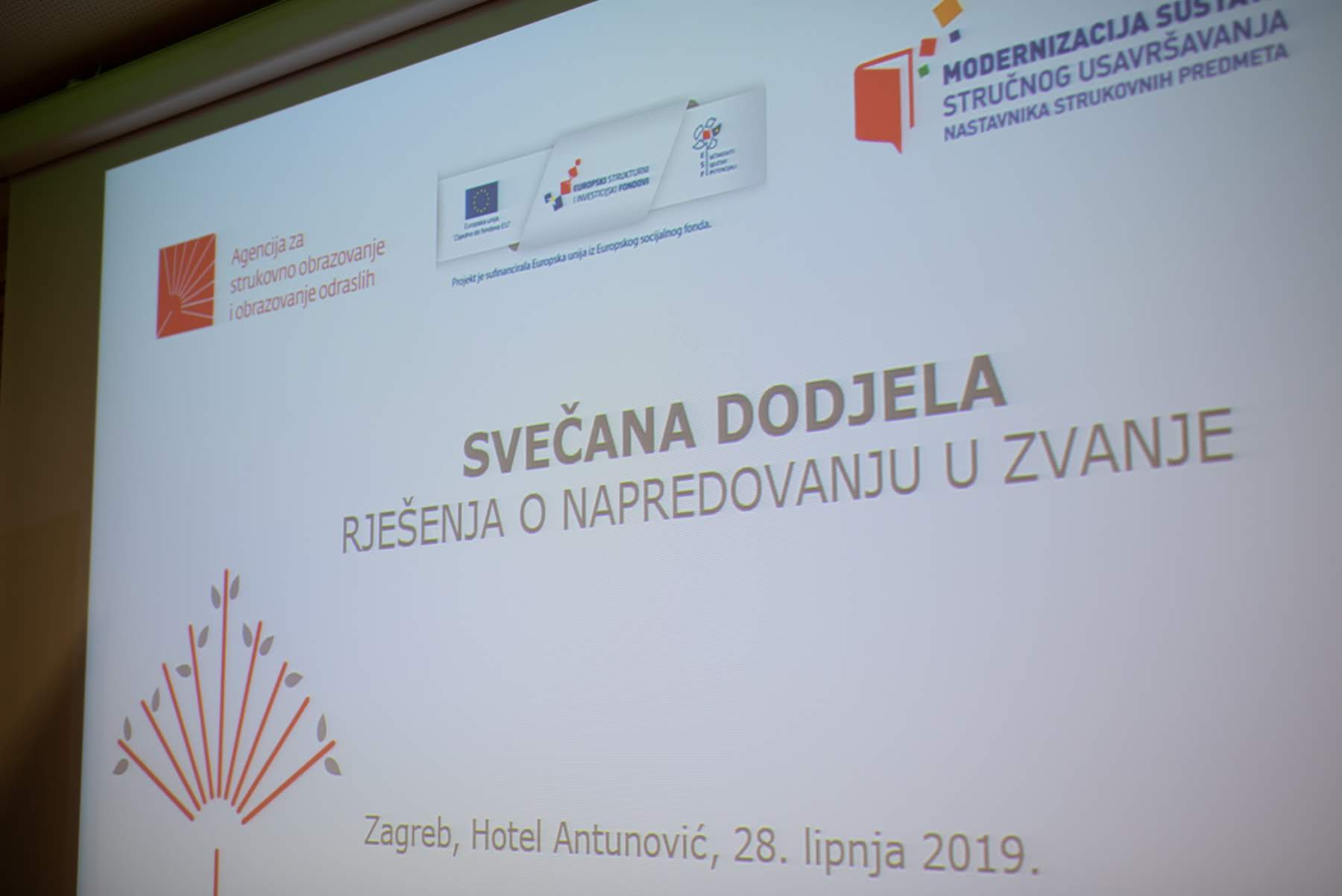 U petak, 28. lipnja 2019., u Hotelu Antunović u Zagrebu održana je Svečana dodjela Rješenja o napredovanju / ponovnom izboru u zvanje nastavnika strukovnih predmeta.