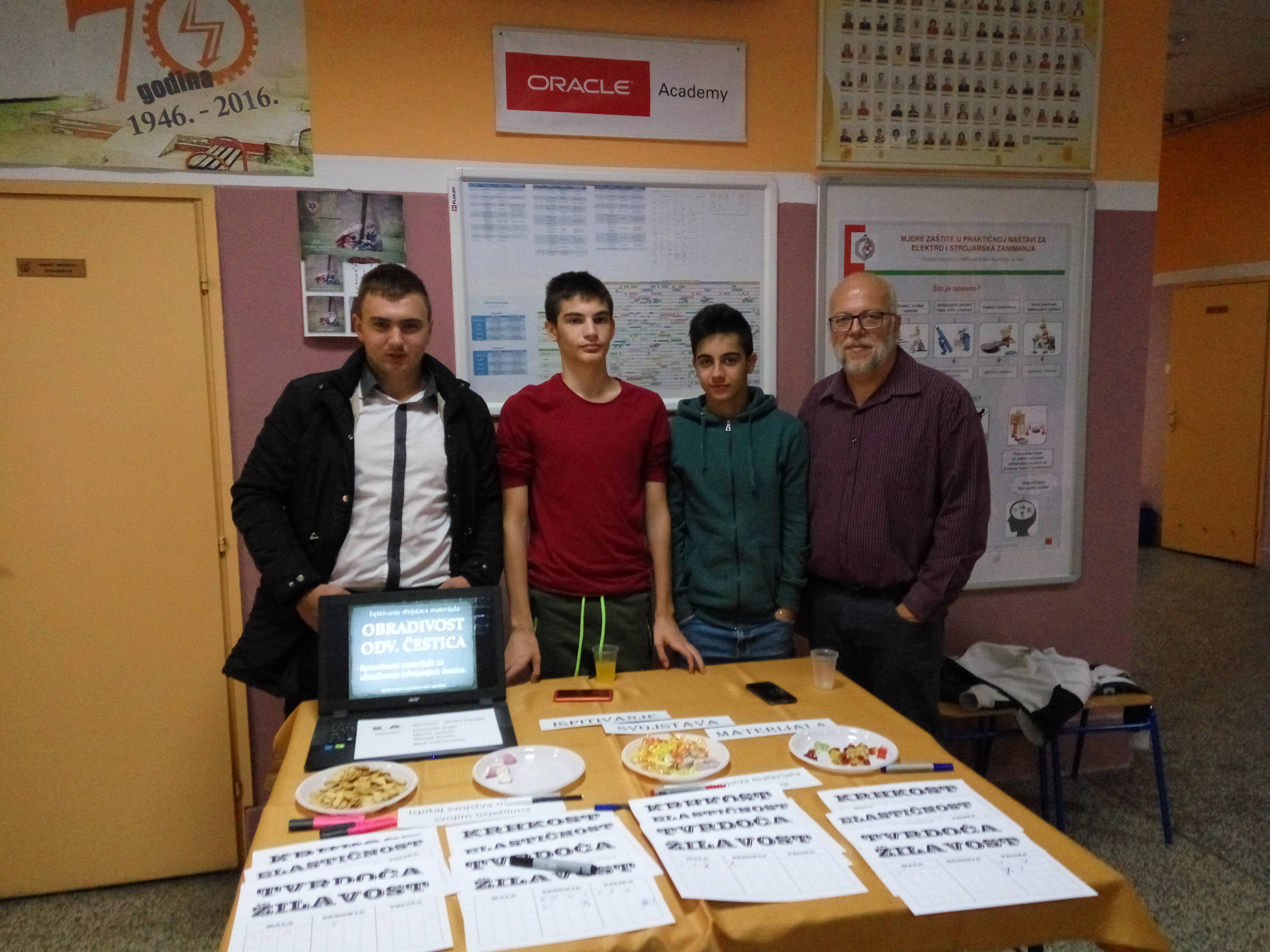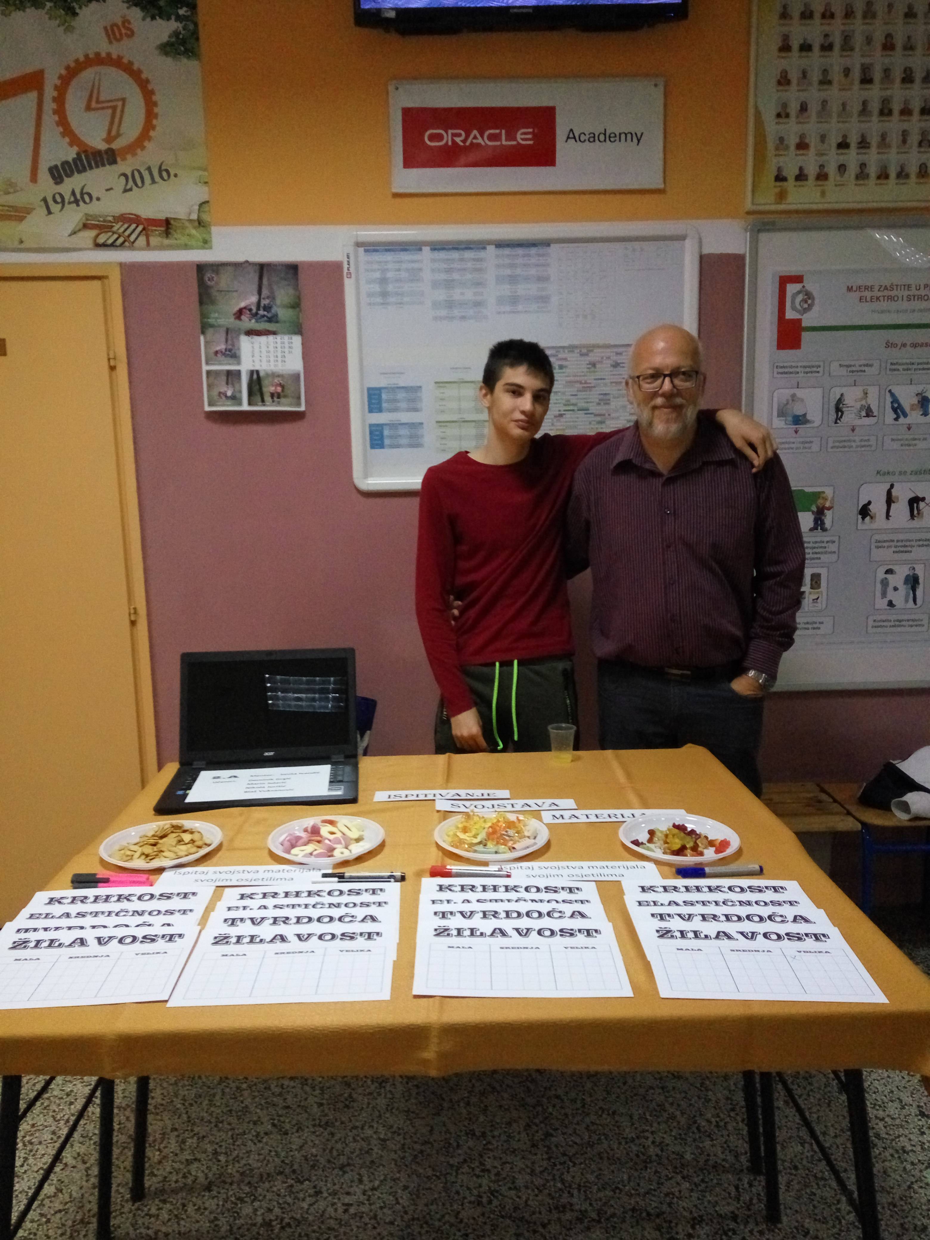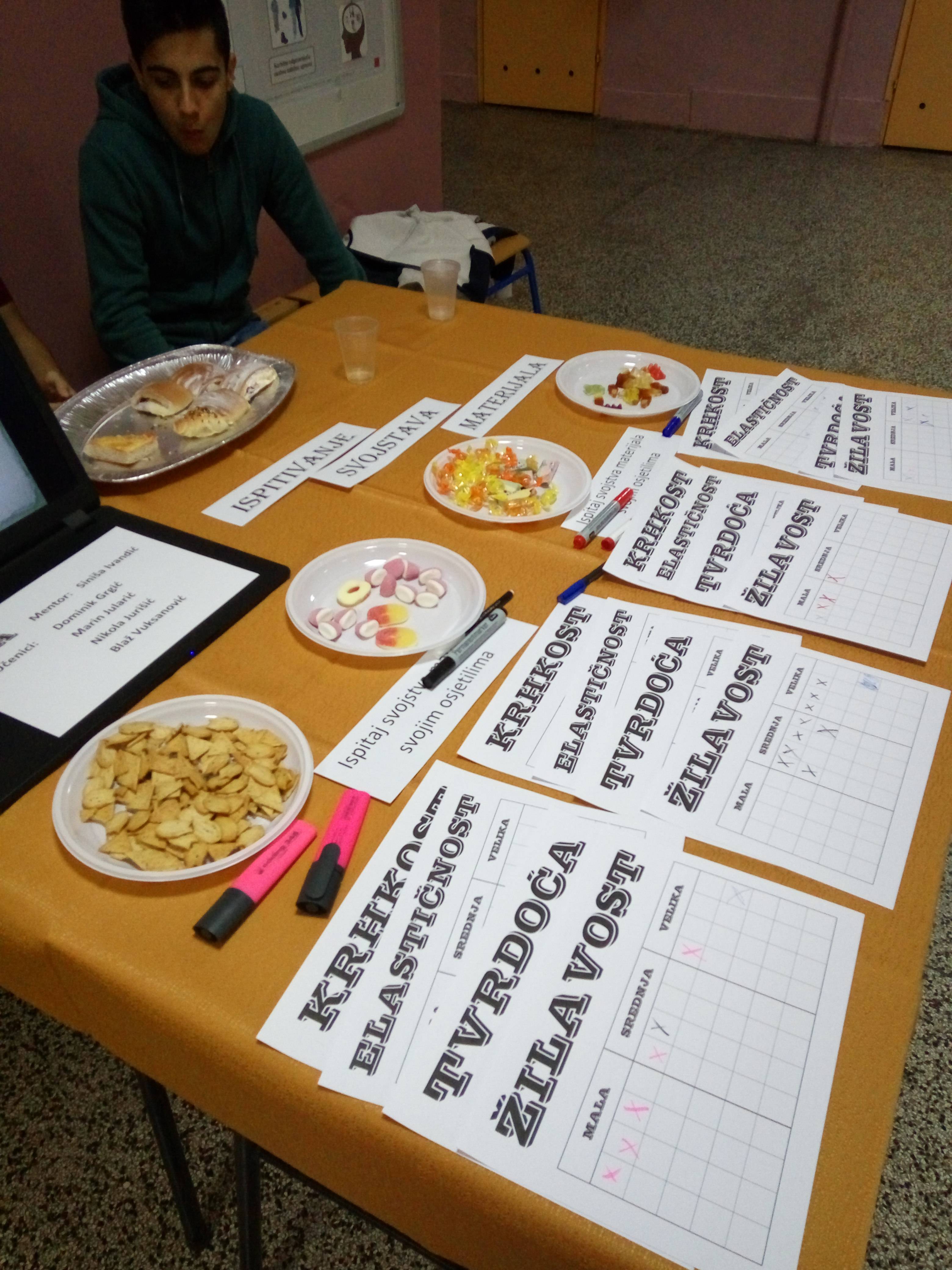 Učenici 2.a razreda zajedno sa svojim razrednikom S. Ivandićem zahvaljuju se svima koji su se uključili u akciju ispitivanja svojstava materijala – Ispitaj svojstva svojim osjetilima. Nadam se da su svi uključeni u akciju naučili nešto novo i spoznali razlike između žilavosti, tvrdoće, elastičnosti, krhkosti i ostalih svojstava materijala.