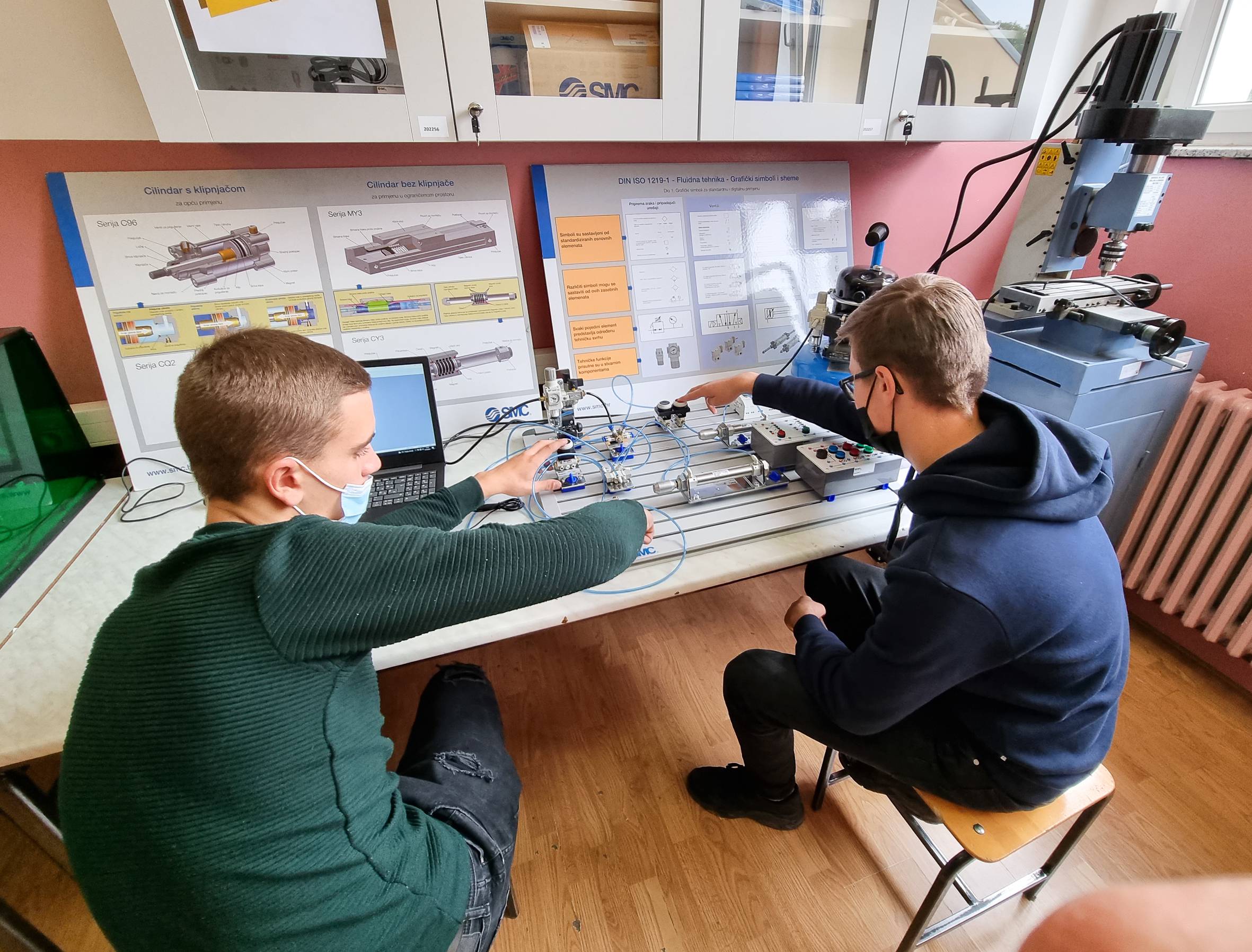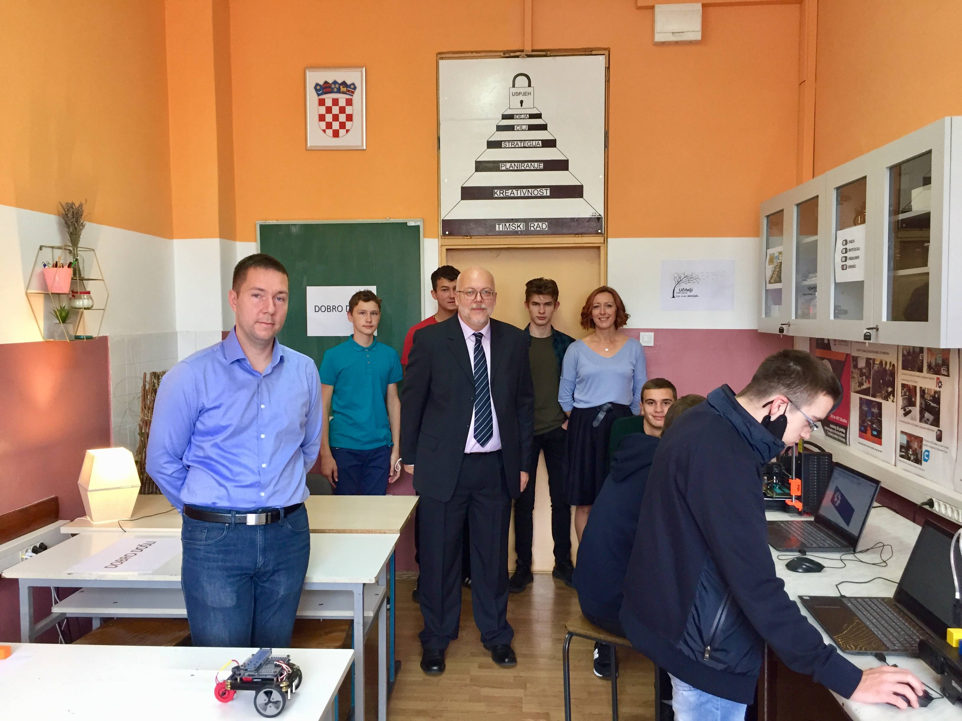 Od ove školske godine naša škola je bogatija za još jedan praktikum. Svečanom otvorenju praktikuma automatike i robotike, nazočio je i ravnatelj Agencije za strukovno obrazovanje i obrazovanje odraslih, Mile Živčić. U praktikumu, u sklopu predmeta Osnove automatizacije učenici završnih razreda-cnc operateri, bravari i svi instalateri imaju vježbe iz područja pneumatike, robotike i 3d printanja. U praktikumu se odvijaju vježbe i za učenike 2. godine-cnc operatere, u sklopu predmeta Aditivne tehnologije. Praktikum je opremljen robotskom rukom koju možemo programirati da prenosi predmete na pokretnu traku. Zatim opremom za pneumatiku i elektropneumatiku, gdje se upravljanje i regulacija izvodi uz odgovarajuće elemente za pripremu zraka, ventile i izvršne elemente. U praktikumu se nalazi i 3D printer, koji radi na principu FDM tehnologije, uz koji svaka ideja može postati stvarnost.