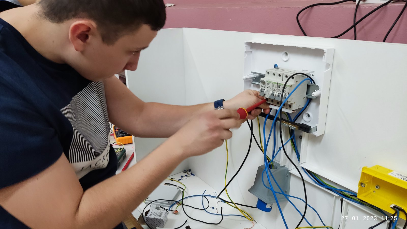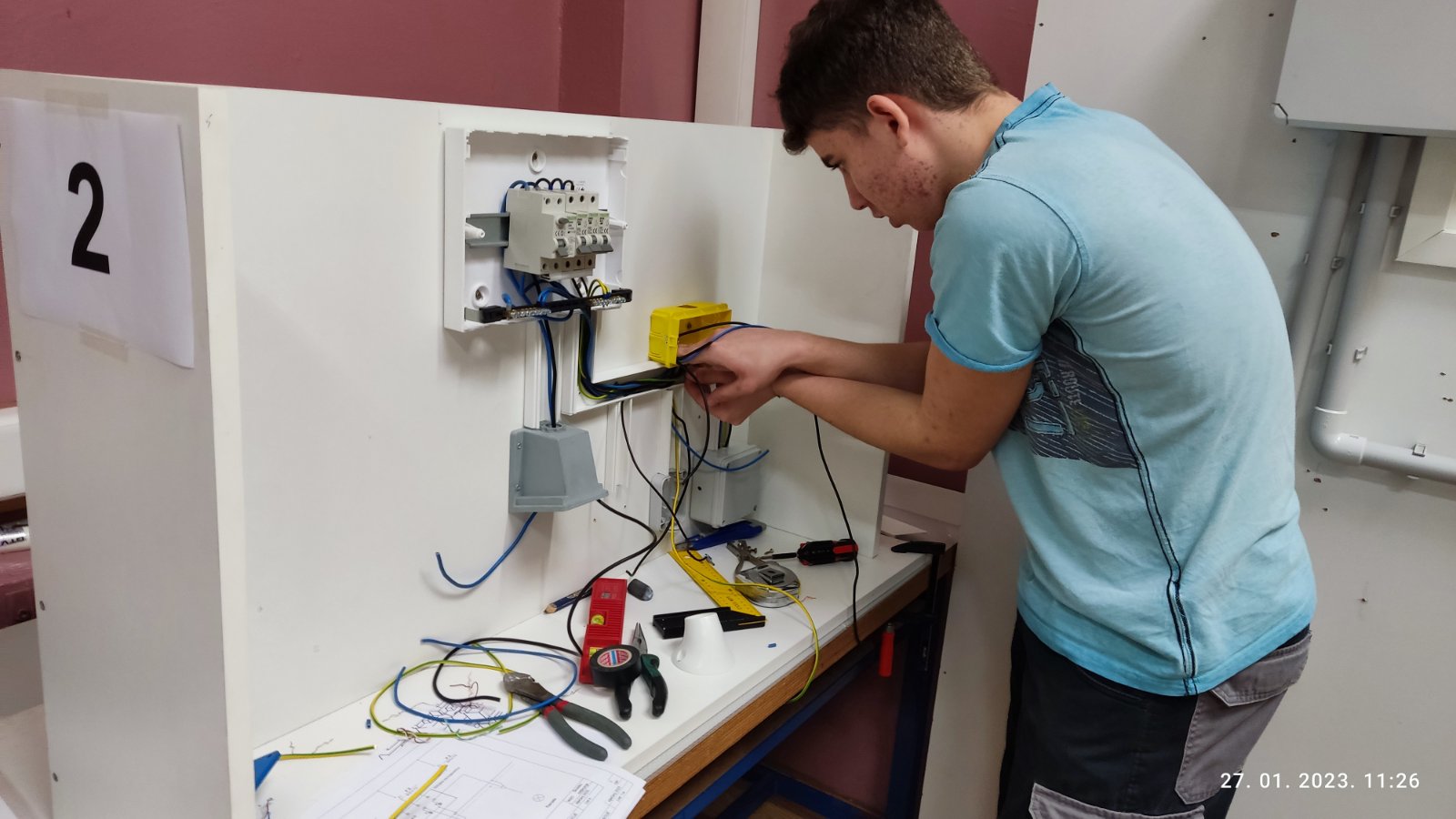 U petak 27.1.2023. u našoj Industrijsko-obrtničkoj školi održano je školsko natjecanje u disciplini „Električne instalacije“ u kojemu su sudjelovali četiri učenika 3.h razreda zanimanja elektroinstalater i Natjecatelji su imali zadatak montaže elemenata i ožičenja električne instalacije kupaonice uz pridržavanje zaštite na radu. Svi učenici su pokazali izvrsno znanje, te su pobjednika doslovno odlučile nijanse i brzina rada. Tako je prvo mjesto osvojio Andrej Živić, te se time plasirao na Međužupanijsko natjecanje koje će se održati na 7.3.2023. u Daruvaru.