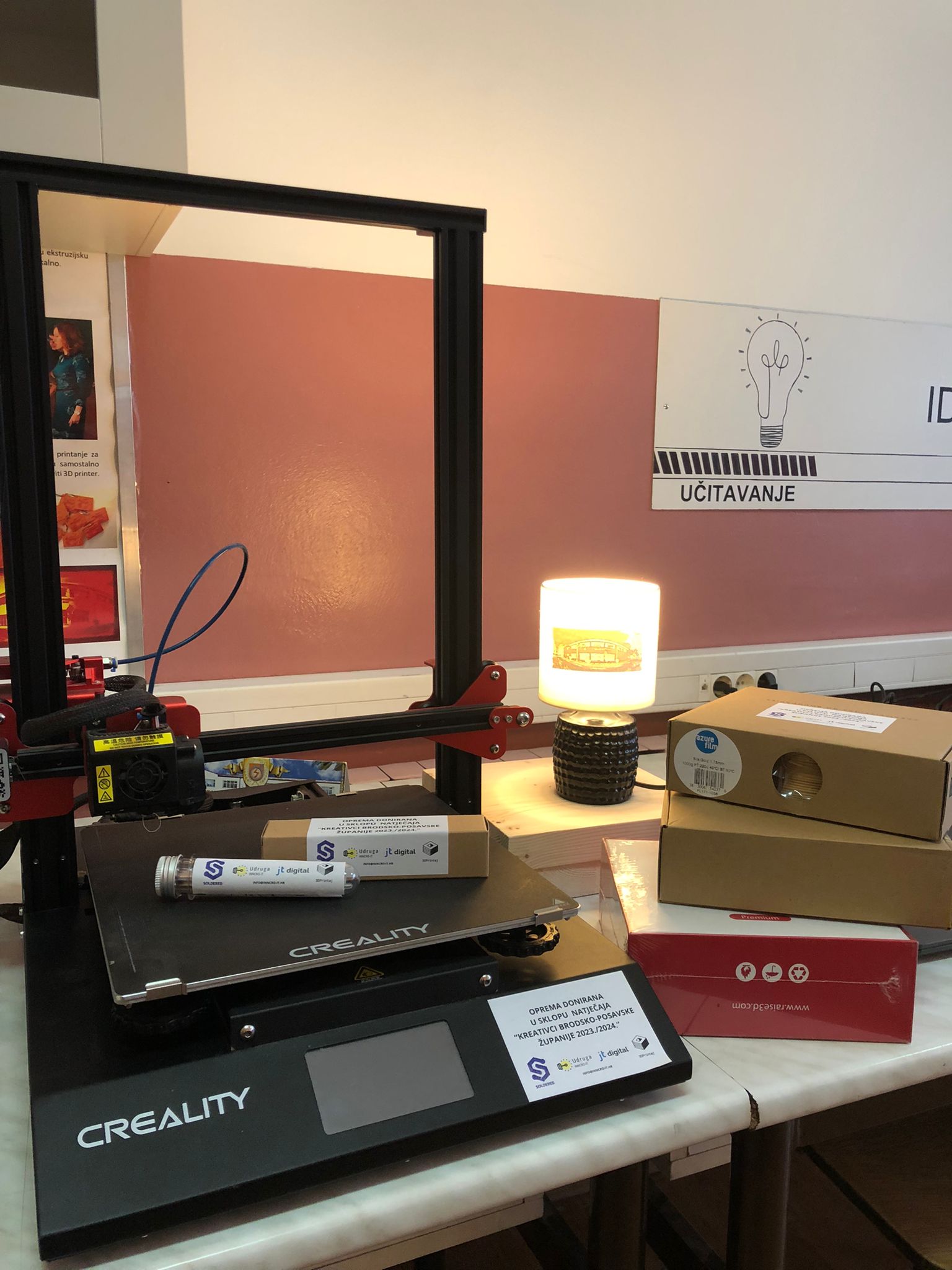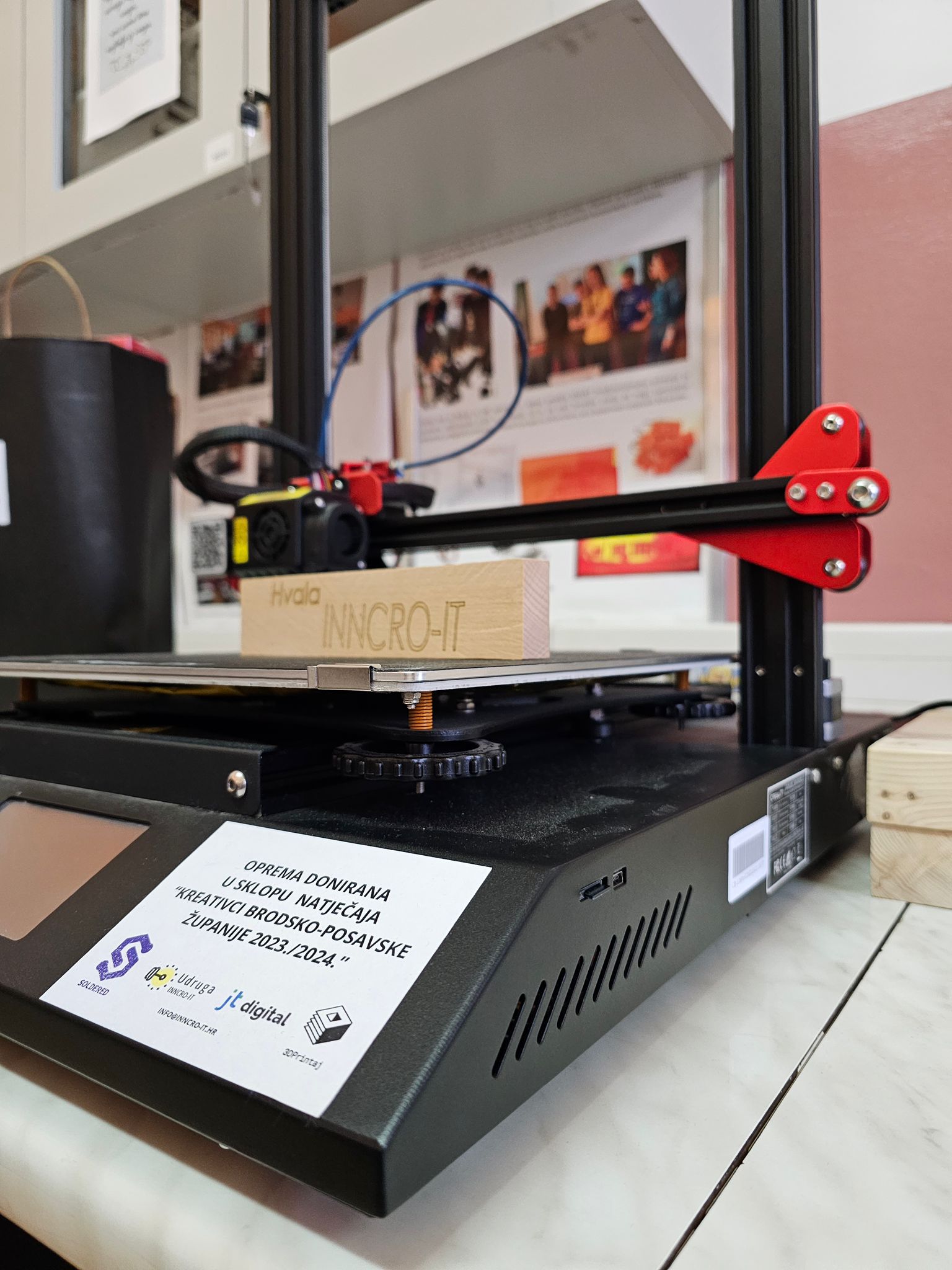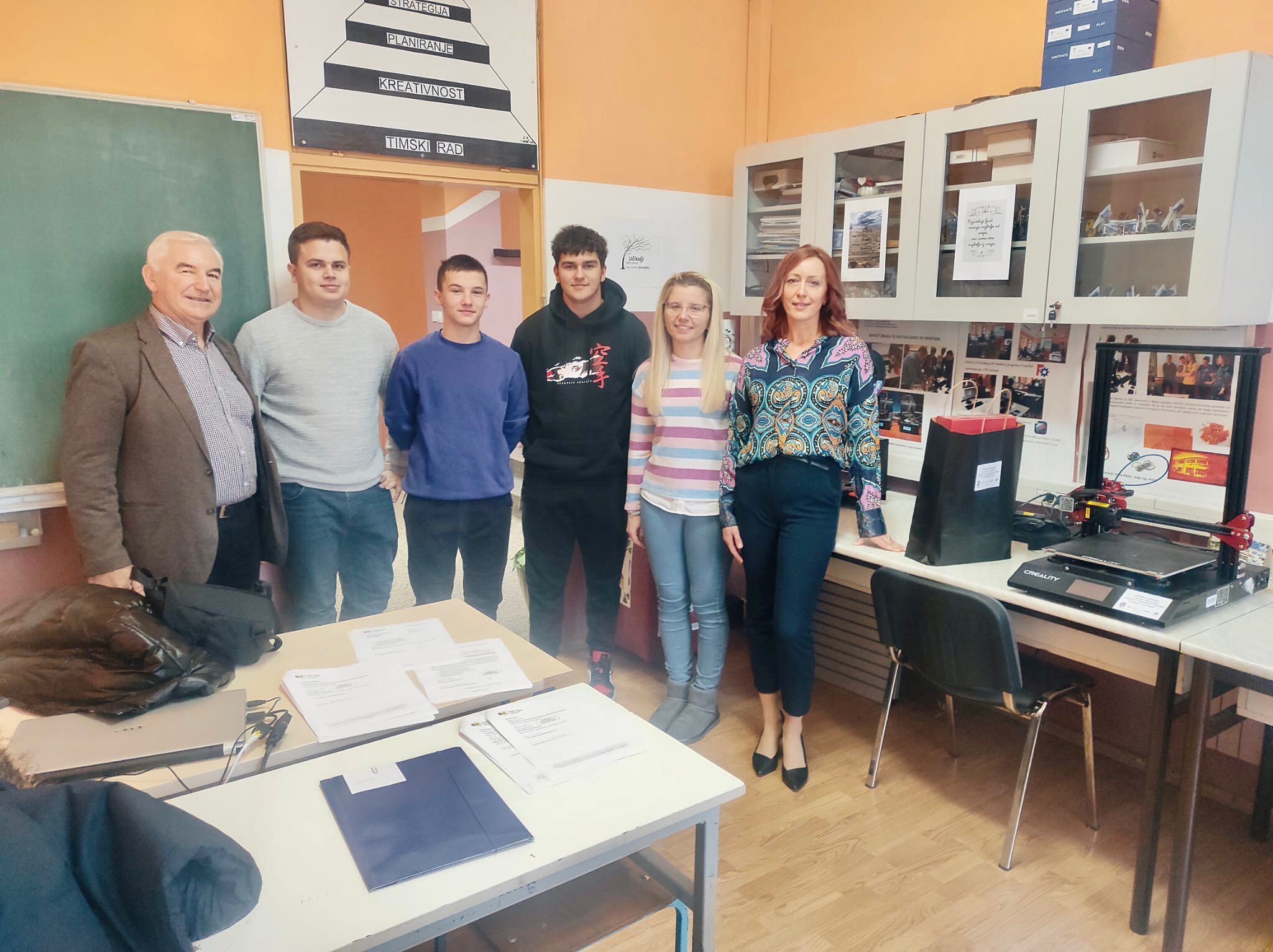Sudjelujući na natječaju „Kreativci Brodsko-posavske županije 2023./24.“, u organizaciji Udruge INOVATIVNIH HRVATSKIH INFORMACIJSKIH TEHNOLOGIJA te gospodarskih partnera JT Digital, 3DPrintaj i Soldered Electronics, naša škola je zahvaljujući trudu i kreativnosti naših učenika Marka Krijana i Nikole Trabalka, pod vodstvom profesorice Ivane Vladić, pobjednik natječaja u srednjoškolskoj kategoriji. Danas je obavljena dodjela vrijednih nagrada, Creality 3D printer s pripadajućom opremom, te potpisan sporazum o suradnji. Hvala svima na potpori.