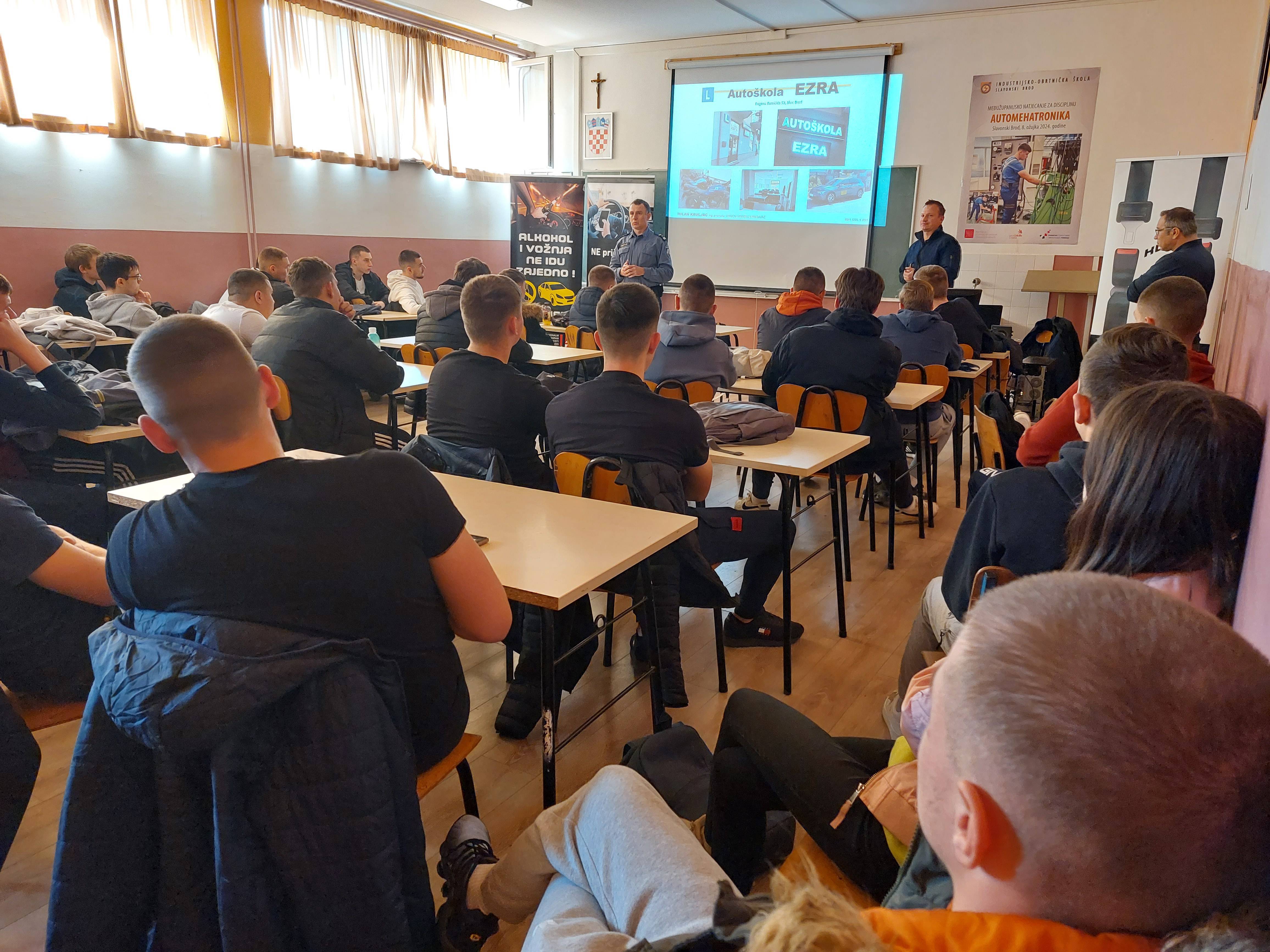 I ovog proljeća su nas kao suradnici u školskom preventivnom programu posjetili djelatnici MUP- a, Hitne Pomoći i autoškole Ezra s poučnim i korisnim predavanjem "Mladi vozač" namijenjenim završnim razredima srednje škole. Predavanje o vrstama prometnih nesreća, mjerama opreza i odgovornom upravljanju vozilom, najosnovnijim prometnim propisima i najčešćim ozljedama prilikom prometnih nesreća su s pažnjom slušali učenici 3.a, 3.b, 3.f i 3.j razreda.