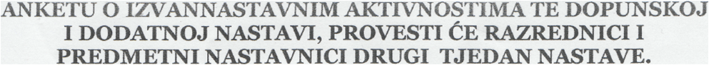O POČETKU IZVANNASTAVNIH AKTIVNOSTI UČENICI ĆE BITI NA VRIJEME OBAVJEŠTENI