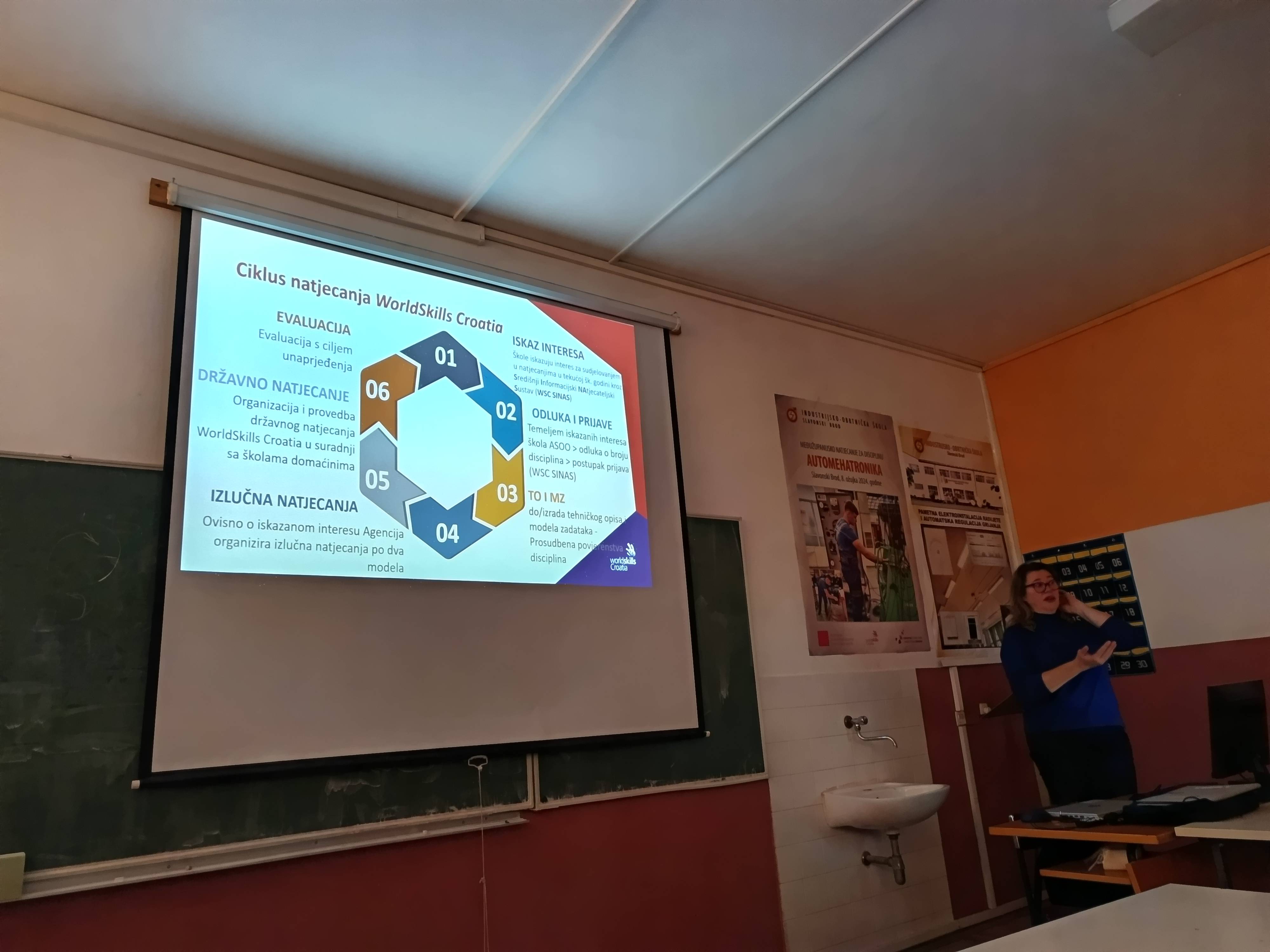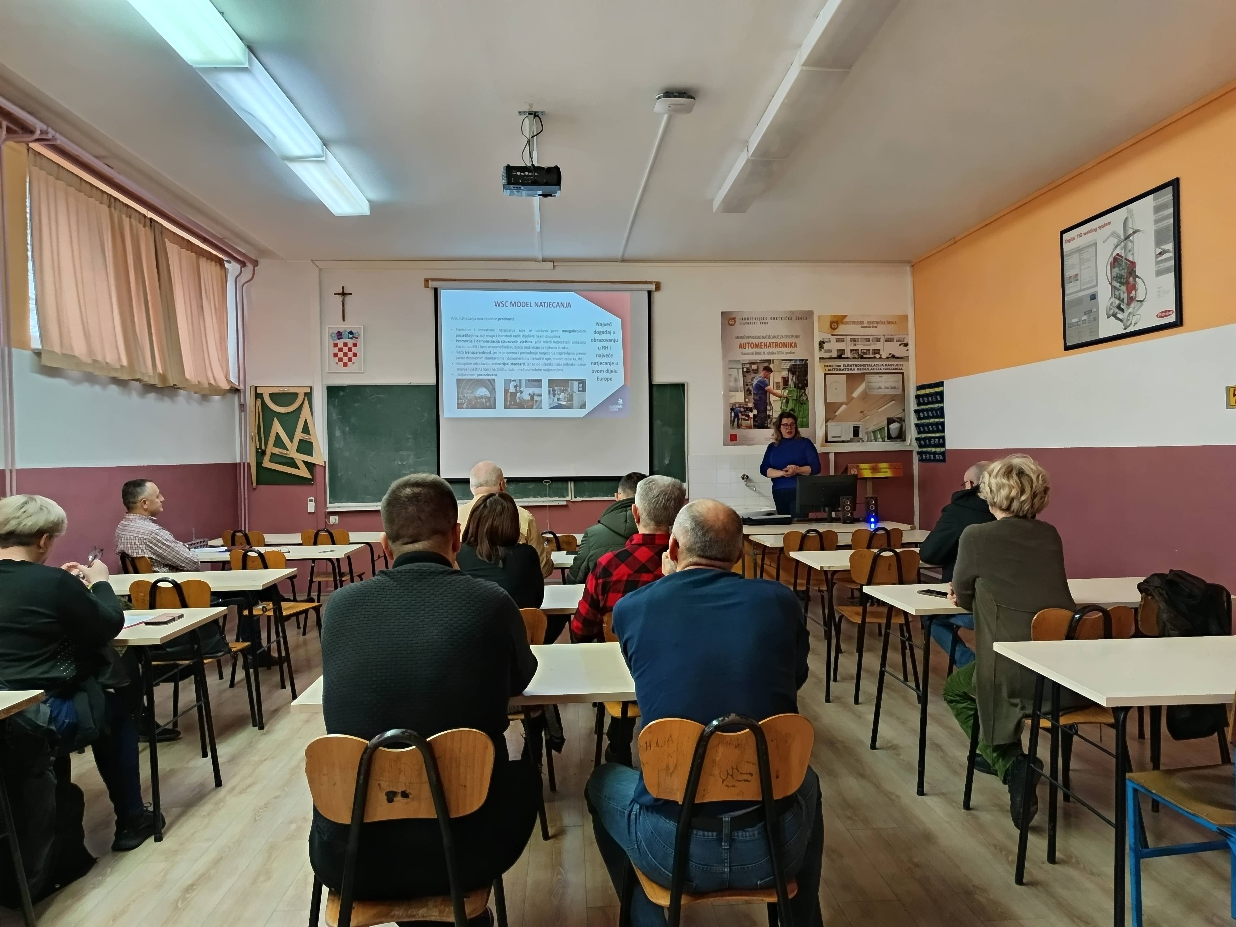 Agencija za strukovno obrazovanje i obrazovanje odraslih s početkom nove školske godine krenula je u pripremu novog ciklusa natjecanja učenika strukovnih škola - WorldSkills Croatia 2025. Naša škola je odabrana za provođenje edukativnih radionica za učenike i nastavnike strukovnih predmeta. Cilj radionica je educirati učenike i nastavnike strukovnih predmeta o modelu Državnog natjecanja učenika strukovnih škola - WorldSkills Croatia, a u svrhu poticanja interesa za sudjelovanjem u strukovnim natjecanjima. U našoj školi, radionice su provedene 16. prosinca 2024.g., a predavačica od strane ASOO je bila gospođa Vera Tomić-Žager, koja ima veliko iskustvo u strukovnim natjecanjima. Iako smo do sada već provodili WCS natjecanja iz više disciplina, te u zadnjih nekoliko godina, od kada se provodi WSC Croatia, često bili i domaćini međužupanijsih pa i državnih natjecanja, odaziv na radionice je bio izvrstan, te smo osvježili svoja znanja i iskustva u provođenju strukovnih natjecanja. Osnaženi ovim radionicama, možemo opet očekivati ponekog međužupanijskog i državnog prvaka, kao što smo do sada već ostvarivali. Sretno svim budućim natjecateljima i njihovim mentorima!