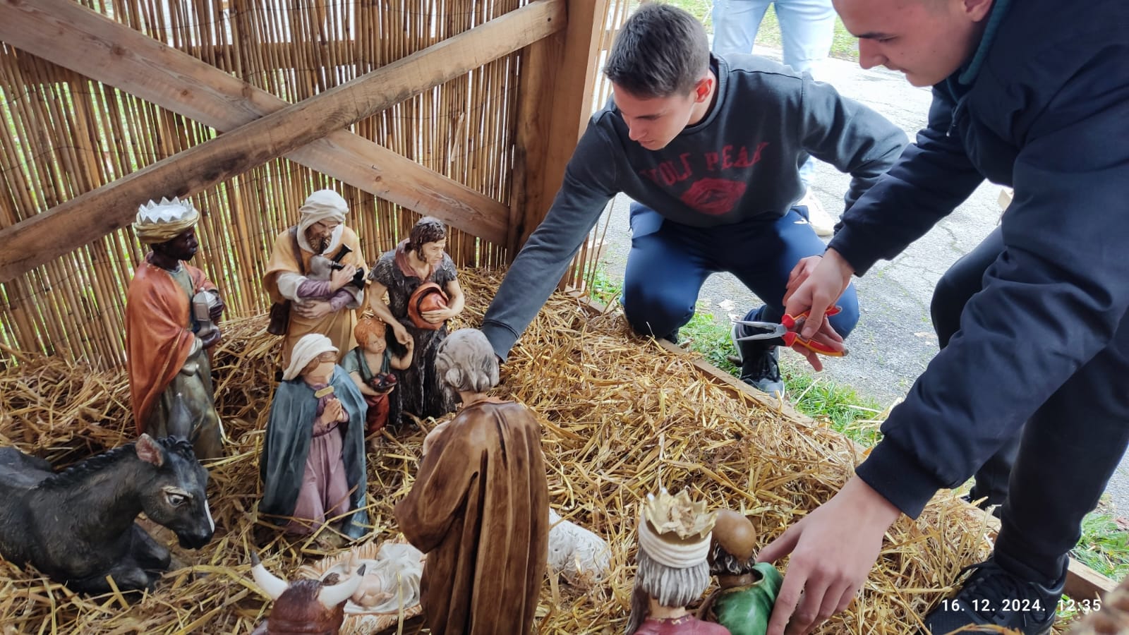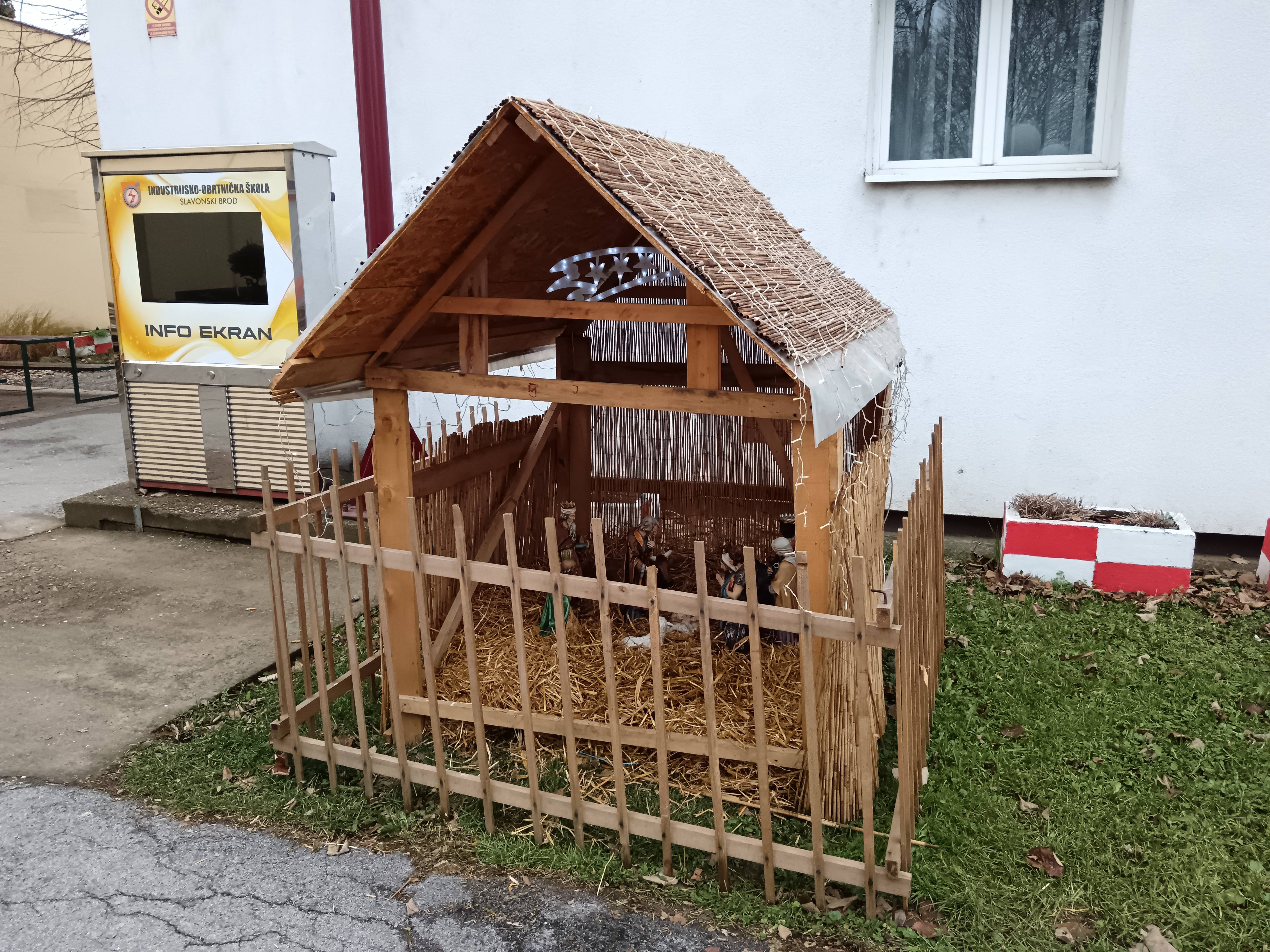 Već tradicionalno, kao i kod Advetskog vijenca, s ciljem razvijanja blagdanskog raspoloženja kod učenika, početkom mjeseca prosinca učenici pomoćničkih i elektro zanimanja pod vodstvom svojih nastavnika A. Jelčića, F. Jelčića i T. Ćosića kreću s izradom Božićnih jaslica. Nakon postavljanja drvene kostrukcije, uslijedilo je uređivanje štalice i jaslica. Kao i do sada, jaslice smo popunili slamom i ukrasili Svetom obitelji. Nakon izrade uslijedilo je dodatno ukrašavanje štalice, postavljanje svjećica i eletrifikacija istih!