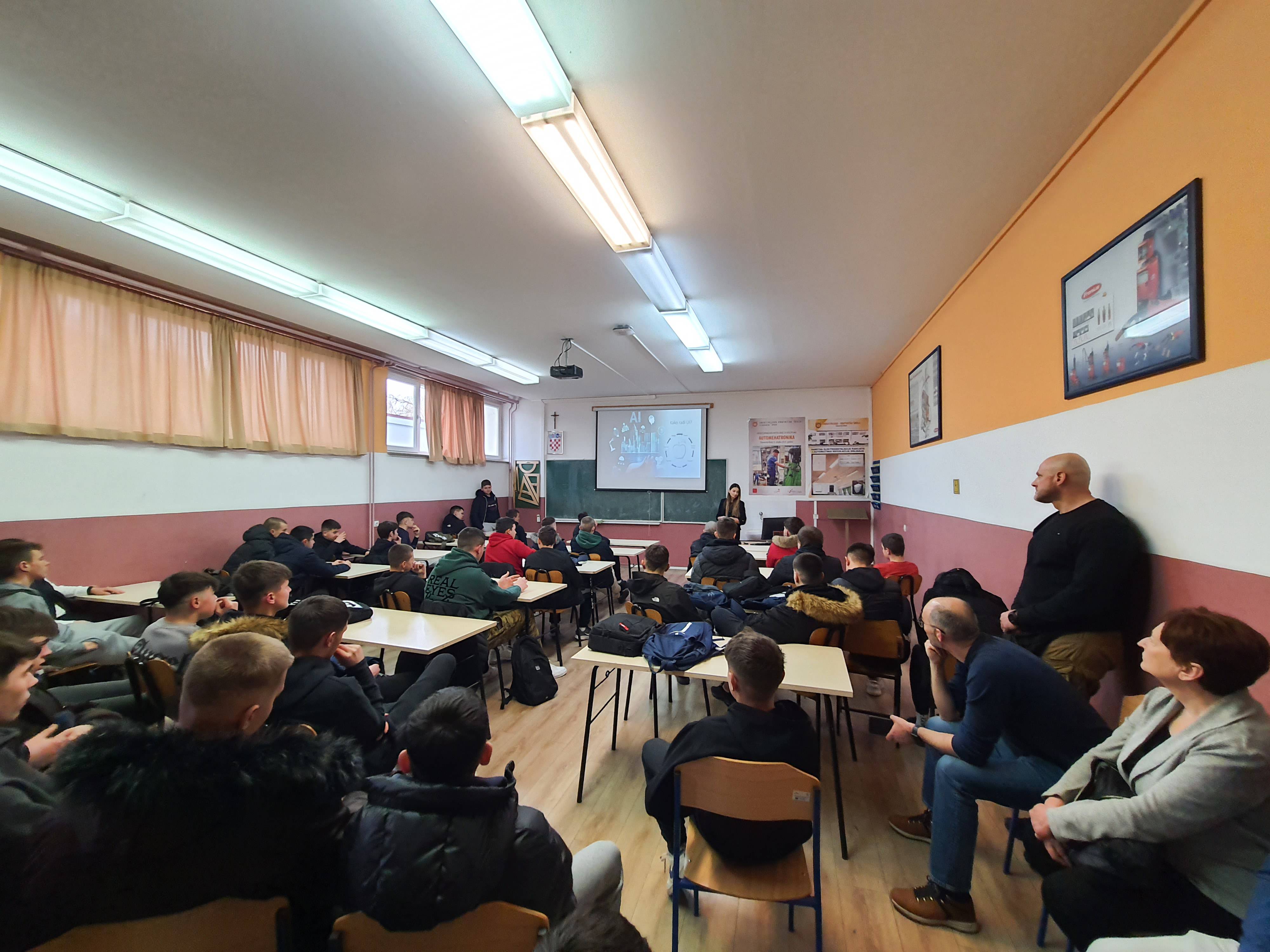 Kroz predavanje učenici 1.c i 1.g razreda zajedno sa svojim nastavnicima imali su priliku čuti što je umjetna inteligencija, kako radi i gdje se primjenjuje.