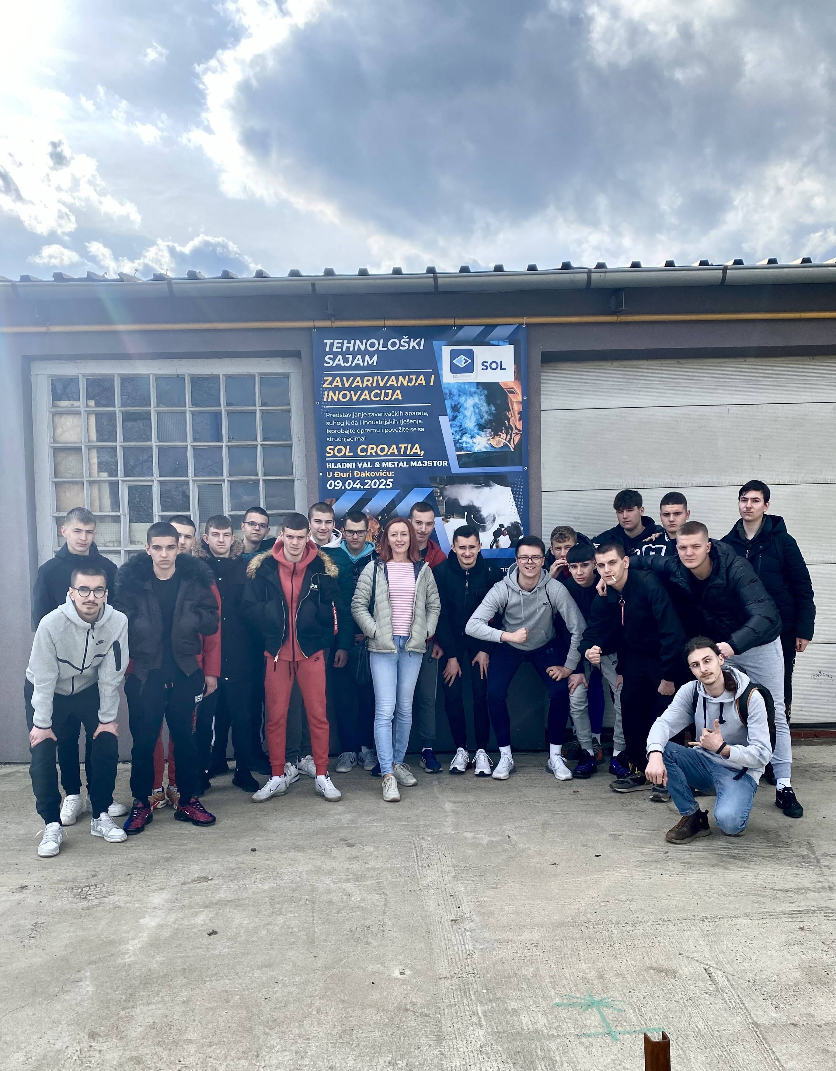 Dana 9.4.2025. naši učenici 1.e, 2.b, 2.f i 3.f razreda u pratnji nastavnika Mirte Szugyi, Mande Bojko, Ivana Hradovi i Ivane Vladić posjetili su Tehnološki sajam zavarivanja i inovacija, koji se održao u Đuri Đaković u organizaciji poduzeća Sol Croatia, Hladni val i Metal majstor. Pri posjeti poduzeću učenici su mogli vidjeti liniju ručnih i poluautomatskih strojeva za zavarivanje i rezanje i to elektrolučnim zavarivanjem, plinovitim elektrolučnim zavarivanjem i zavarivanje TIG metodom. Nakon predstavljanja zavarivačkih aparata, suhog leda i industrijskih rješenja od strane organizatora sajma, naši učenici i nastavnici su imali priliku isprobati opremu i izvesti zavarivanje. Zahvaljujemo se organizatoru na interesantnoj demonstraciji svih uređaja.