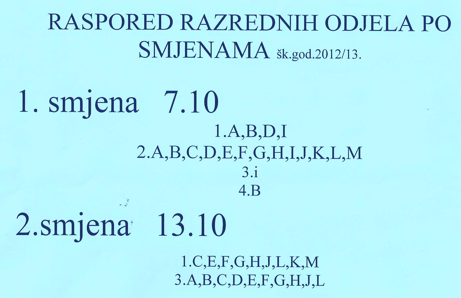 U ponedjeljak svi učenici moraju doći, po navedenom rasporedu smjena, na prvi sat (u 7.10 ili 13.10).